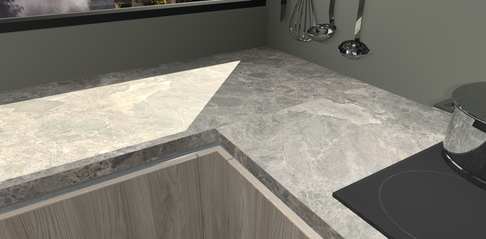 - Bij een hoekwerkblad zijn de hoeken in gevreesd en op maat gemaakt