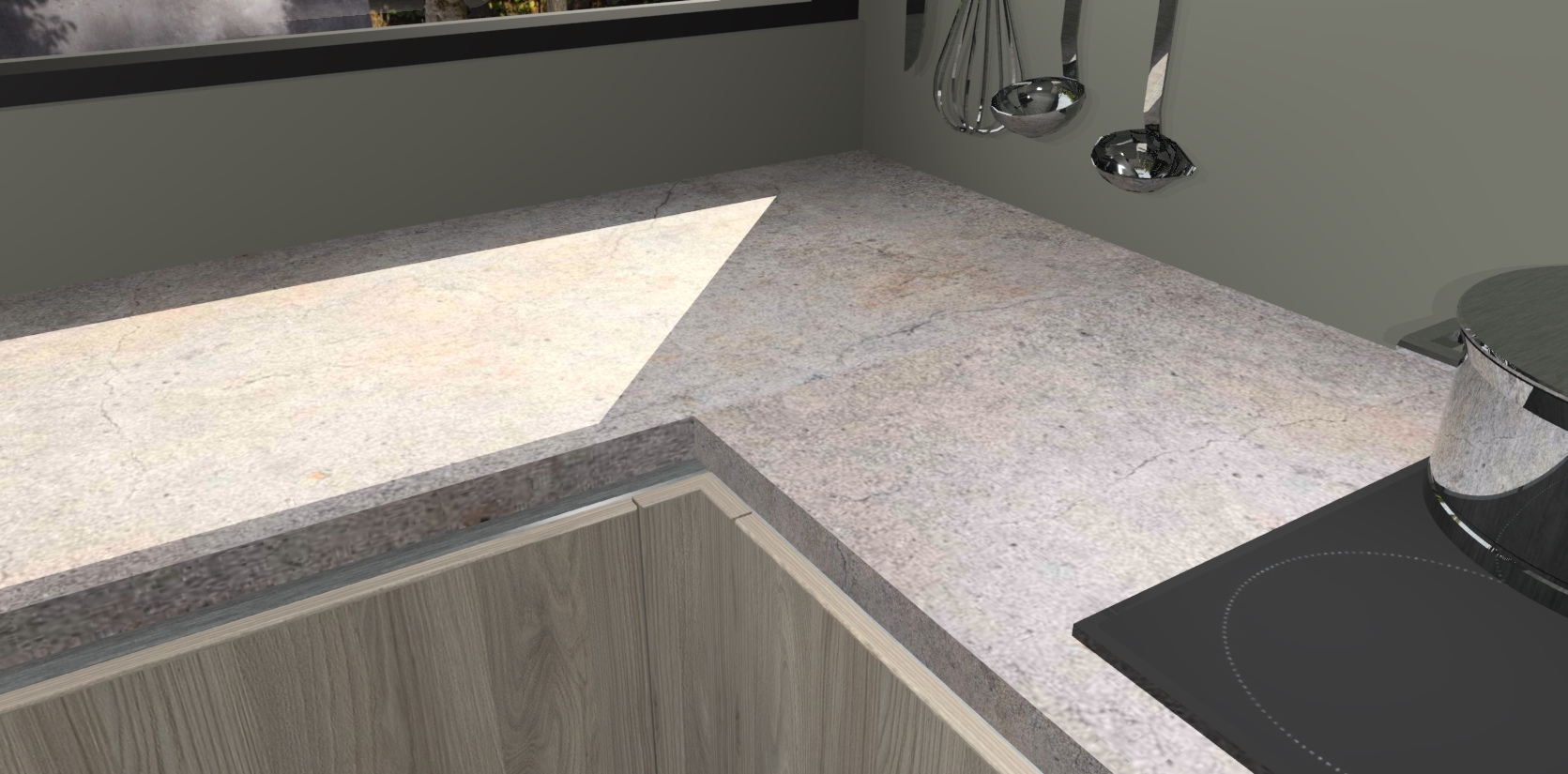 - Bij een hoekwerkblad zijn de hoeken in gevreesd en op maat gemaakt