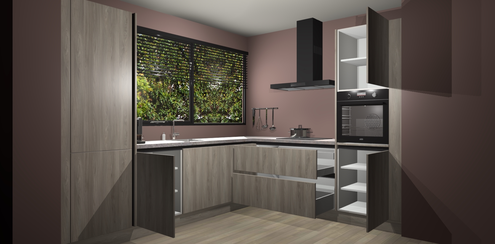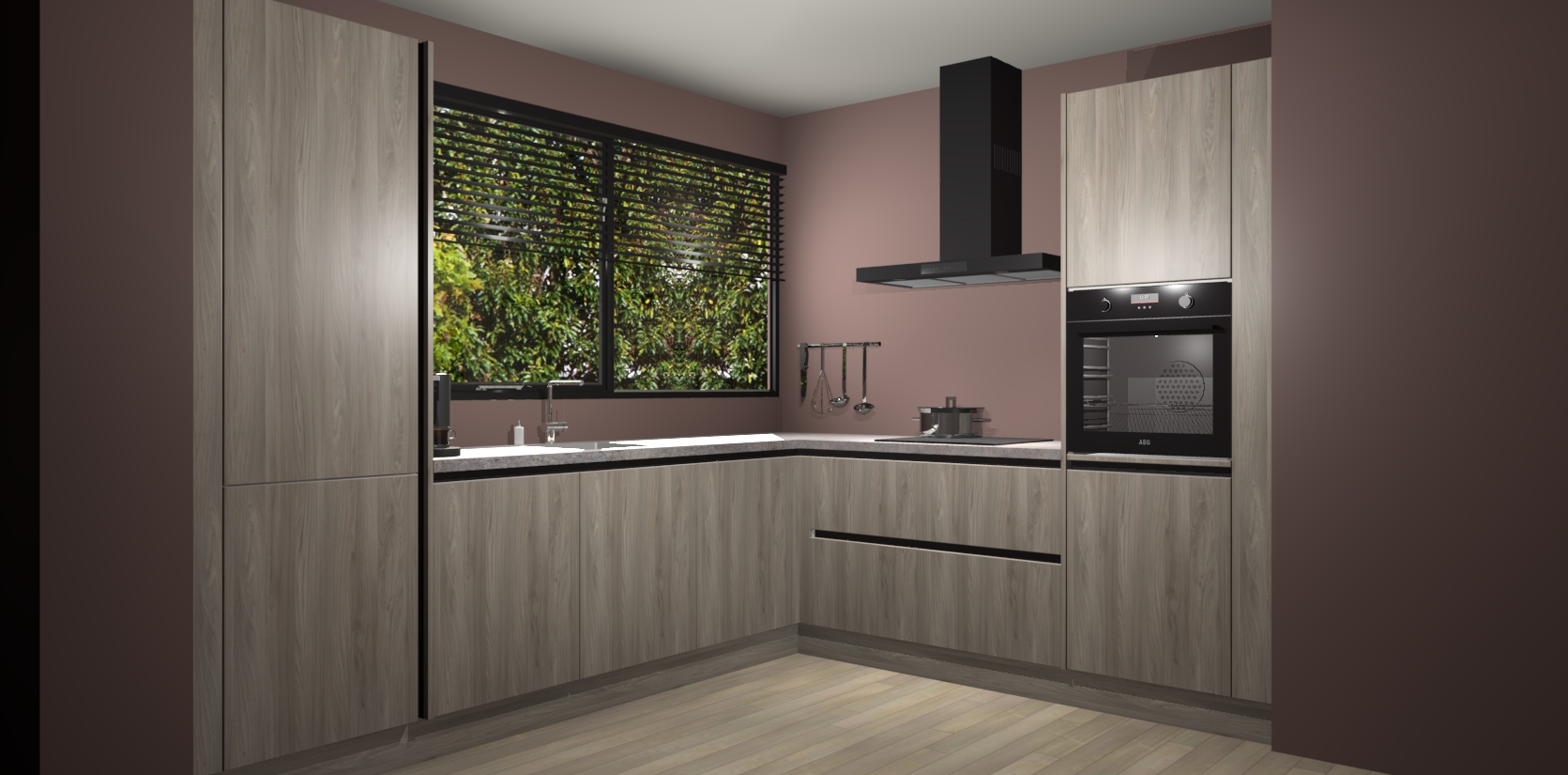 Met een modern, tijdloos design en ruime opslagruimte, zult u zich in no-time thuis voelen in uw nieuwe keuken. Uw leven wordt eenvoudiger met de soft-close deuren die voor het ultieme stille comfort zorgen - geen geluid dat u stoort terwijl u kookt. Ook is de keuken voorzien van 5 ingebouwde apparaten: een oven, inductie kookplaat, afzuigkap, vaatwasser en koelkast. Deze kunnen gemakkelijk na bestelling worden bijgewerkt naar AEG - waardoor uw luxe ervaring compleet is.