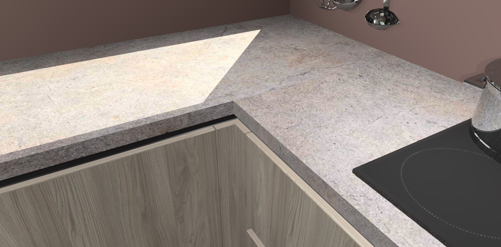 - Bij een hoekwerkblad zijn de hoeken in gevreesd en op maat gemaakt