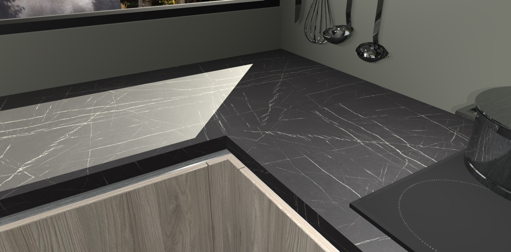 - Bij een hoekwerkblad zijn de hoeken in gevreesd en op maat gemaakt
