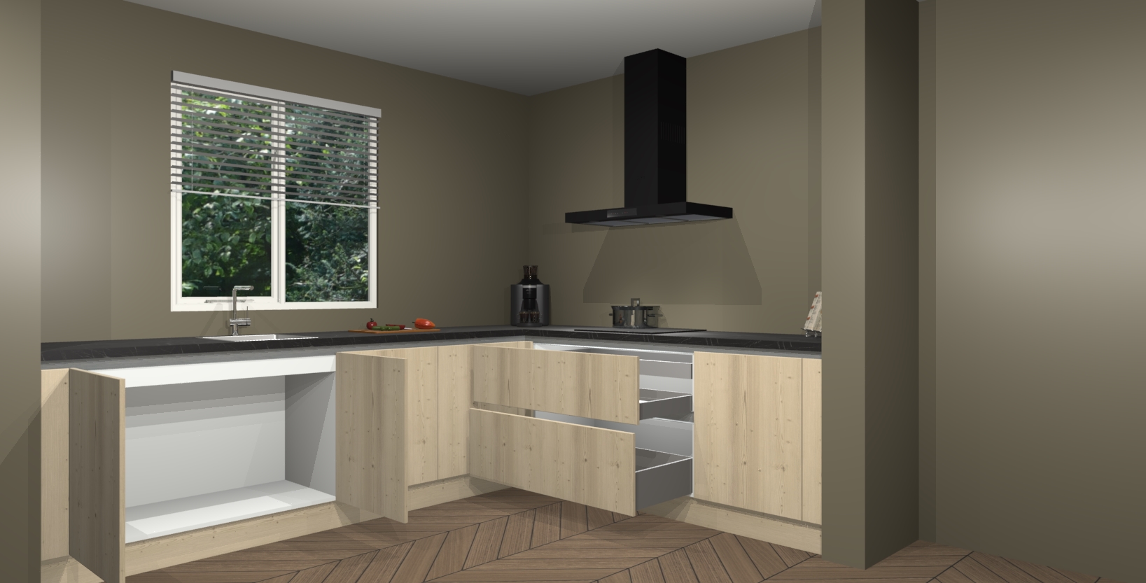 - Bij een hoekwerkblad zijn de hoeken in gevreesd en op maat gemaakt