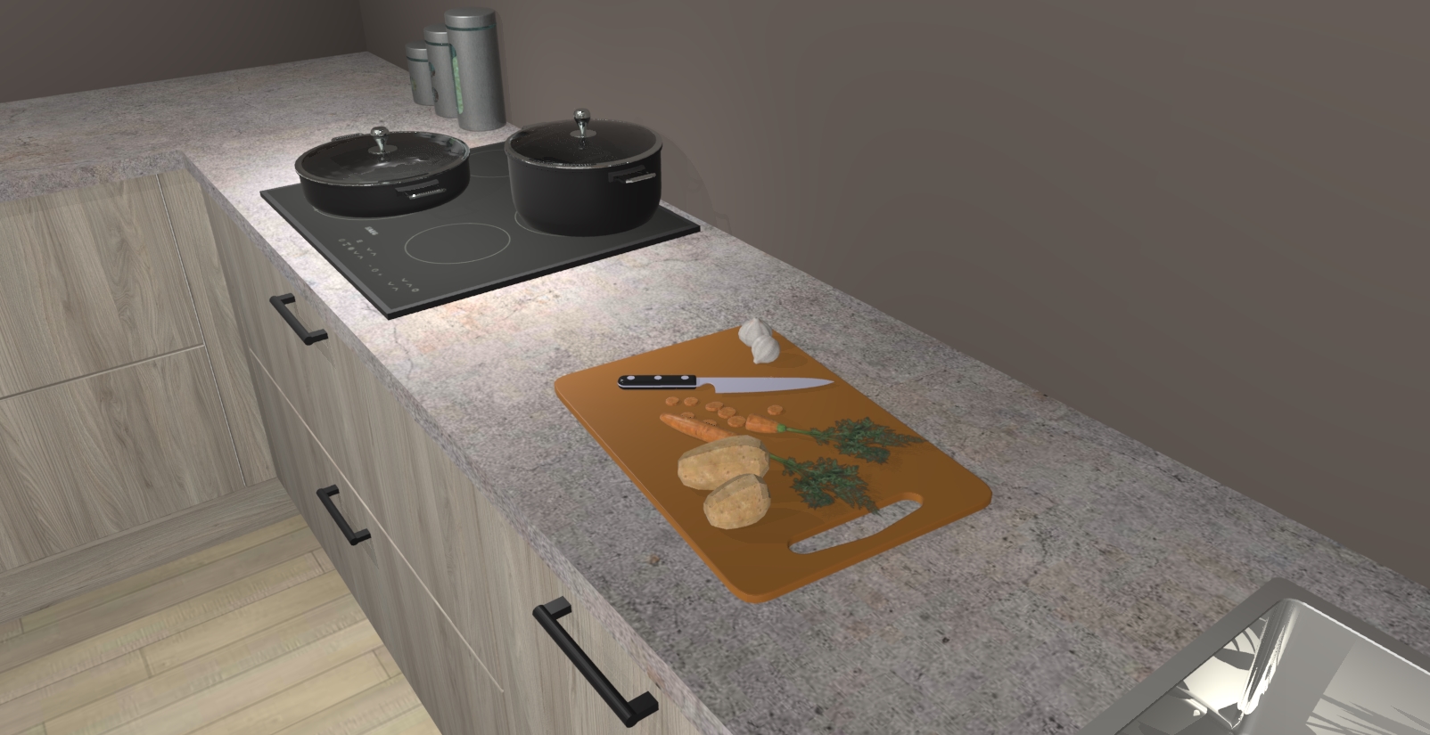 Inclusief plinten, stelpoten en werkblad