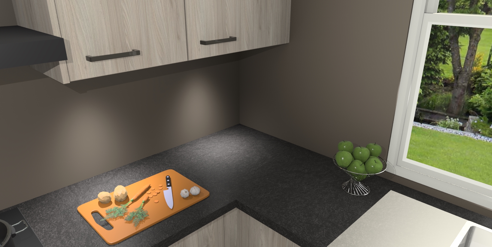 - Bij een hoekwerkblad zijn de hoeken in gevreesd en op maat gemaakt