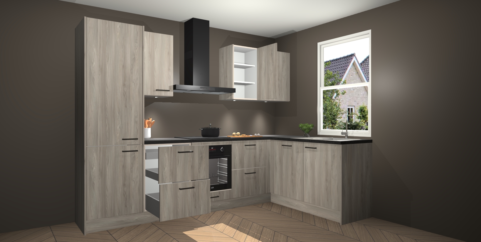 In deze box zijn alle kleuren verzameld van de deuren en werkbladen. Vraag de gratis kleurenbox aan en kijk thuis rustig verder!