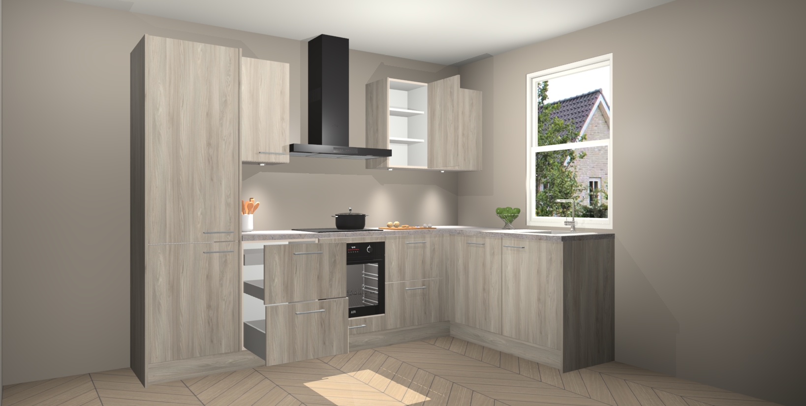 Maak kennis met de trendsettende en luxe Olm keuken Bazel! Deze uitzonderlijke keuken van Duitse kwaliteit is stijlvol, modern en perfect om elk huis mee op te fleuren. De binnenkant van de kasten worden meegenomen in een bijpassende kleur om een samenhangende eigentijdse esthetiek te voltooien. U zult dol zijn op hoe uw pas gerenoveerde keuken eruitziet met de Olm editie!