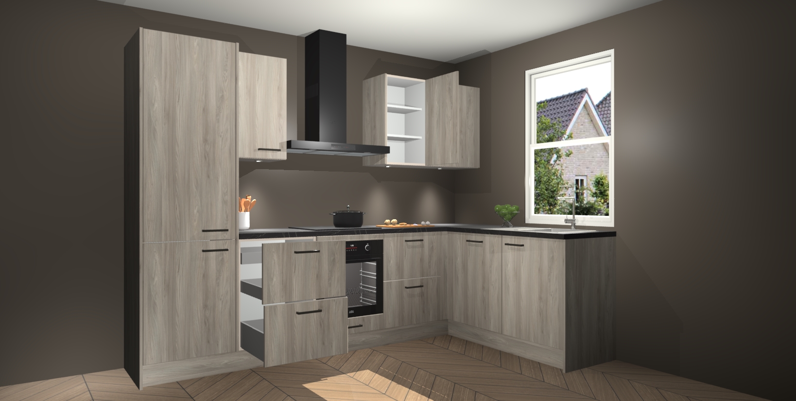 Maak kennis met de trendsettende en luxe Olm keuken Bazel! Deze uitzonderlijke keuken van Duitse kwaliteit is stijlvol, modern en perfect om elk huis mee op te fleuren. De binnenkant van de kasten worden meegenomen in een bijpassende kleur om een samenhangende eigentijdse esthetiek te voltooien. U zult dol zijn op hoe uw pas gerenoveerde keuken eruitziet met de Olm editie!