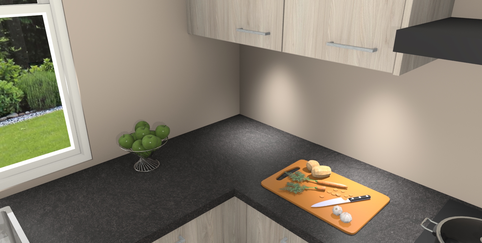 - Bij een hoekwerkblad zijn de hoeken in gevreesd en op maat gemaakt