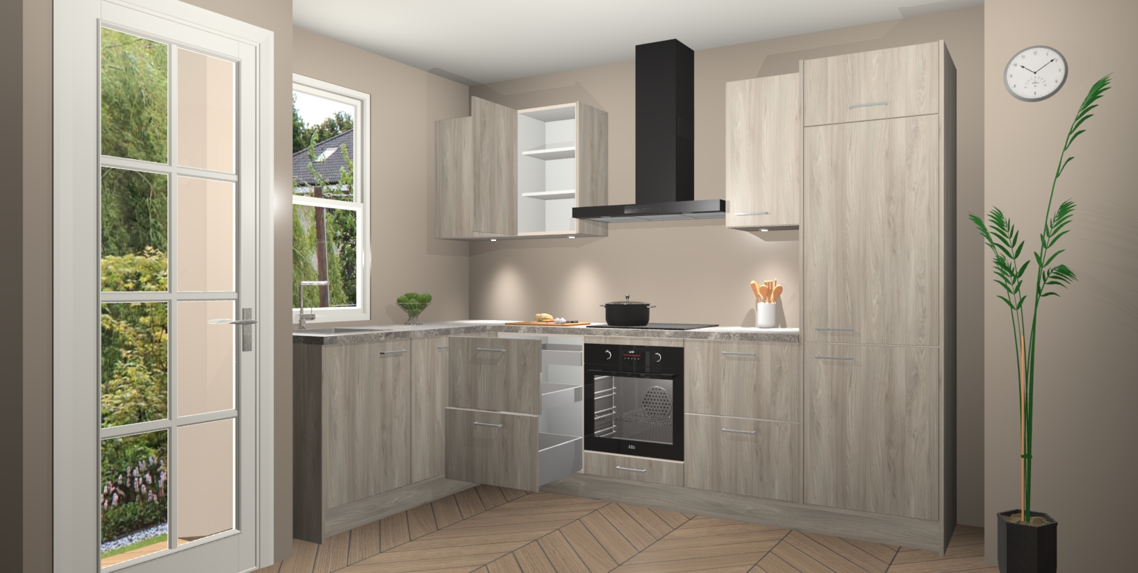 Bent u op zoek naar een strakke, moderne hoekkeuken die uw huis oppept en een moderne uitstraling geeft? Kijk dan niet verder dan de olm keuken Beijing. Deze verbluffende hoekkeuken tilt hedendaags design naar een hoger niveau. Qua stijl is deze chique hoekkeuken voorzien van olm accenten, om een strakke maar opvallende look te creëren. De binnenkant van de kasten is afgewerkt in dezelfde prachtige olm kleur voor extra esthetische aantrekkingskracht.