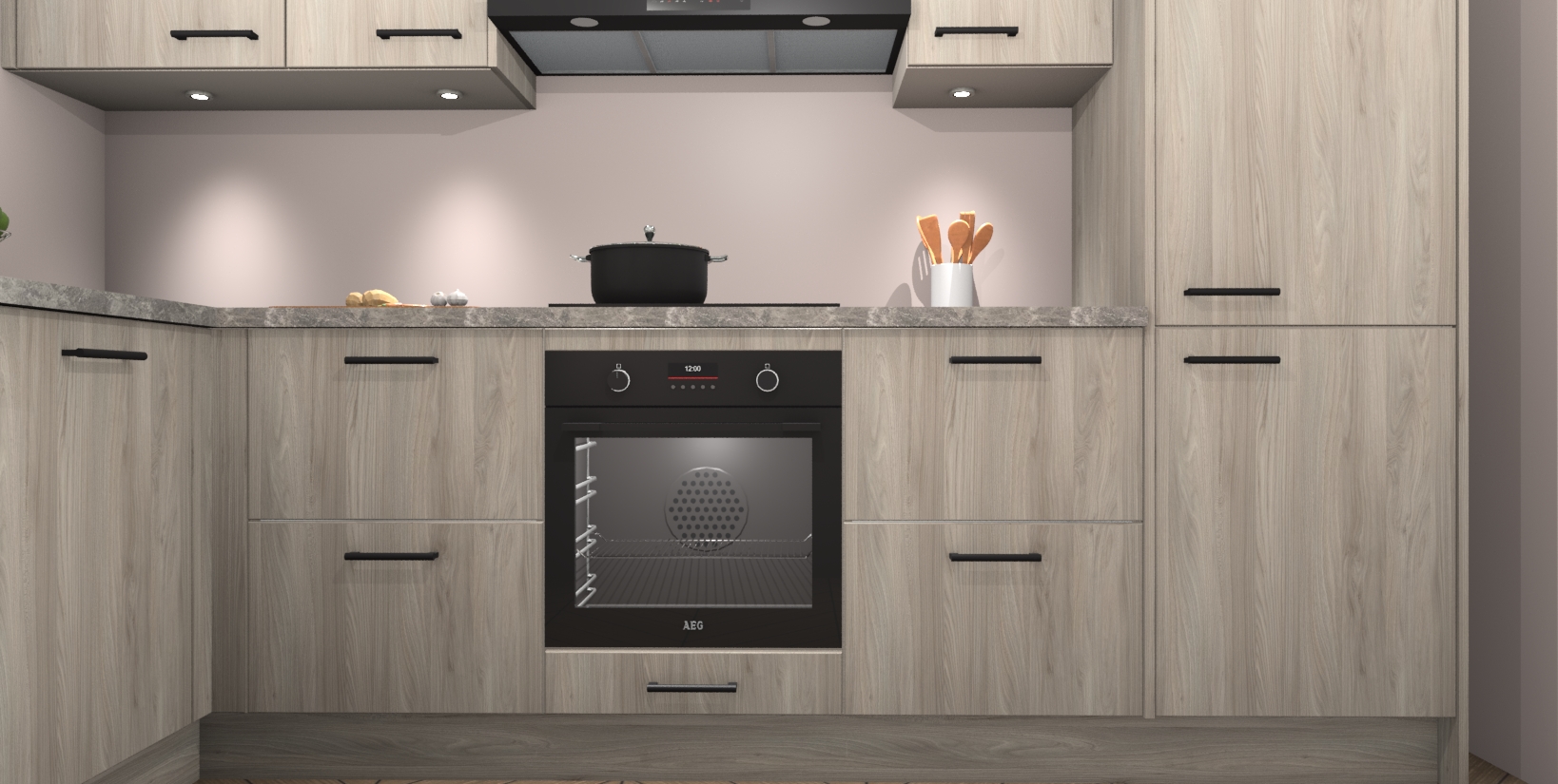 U hoeft zich ook geen zorgen te maken over een gebrek aan opbergruimte, want deze keuken heeft voldoende opbergmogelijkheden zowel boven als onder het aanrecht. Om het leven nog makkelijker te maken, wordt deze moderne hoekkeuken geleverd met 5 ingebouwde apparaten, waaronder een oven, inductiekookplaat, afzuigkap, vaatwasser en koelkast, zodat u in een mum van tijd klaar bent voor actie!