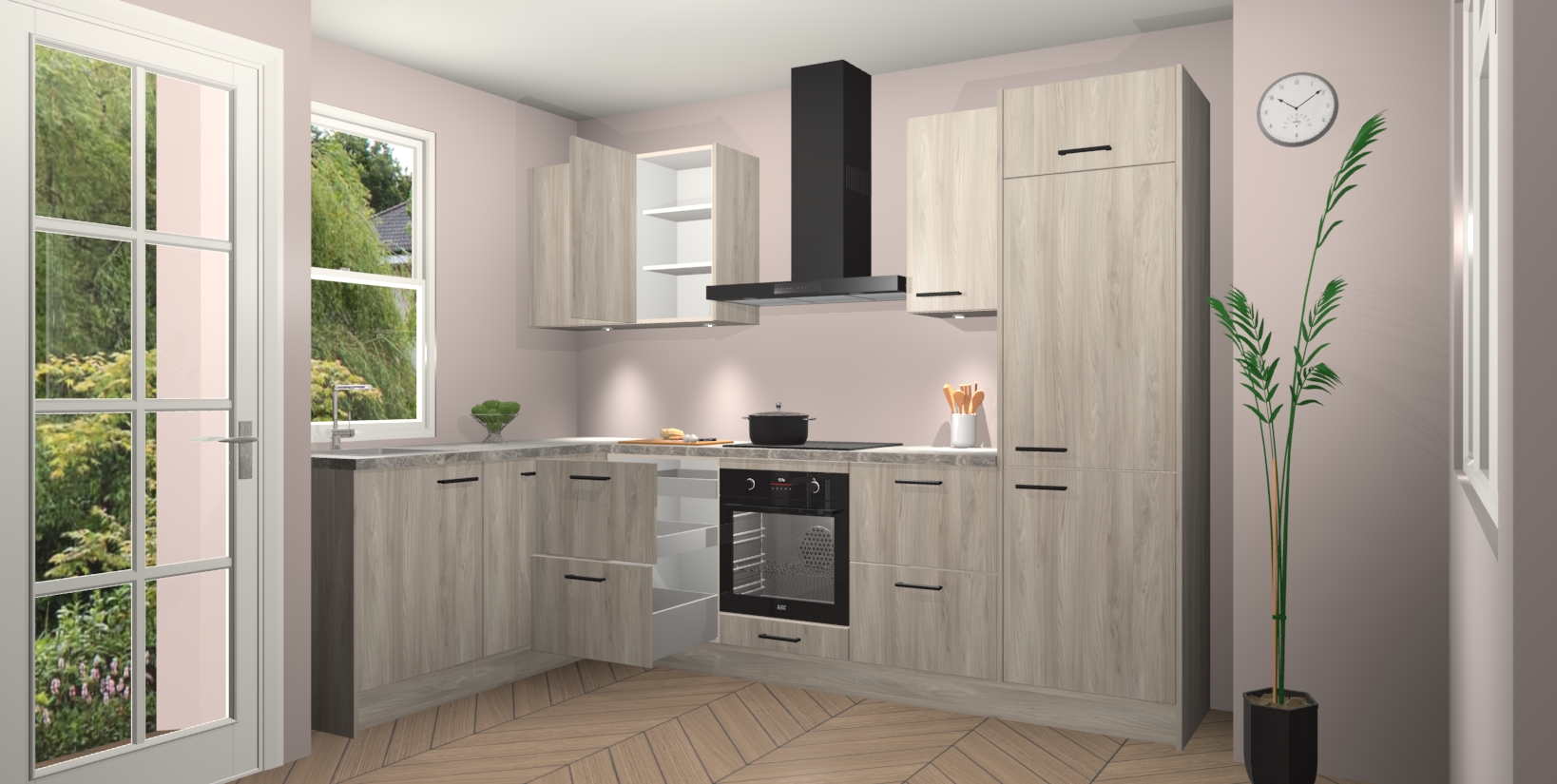 Bent u op zoek naar een strakke, moderne hoekkeuken die uw huis oppept en een moderne uitstraling geeft? Kijk dan niet verder dan de olm keuken Beijing. Deze verbluffende hoekkeuken tilt hedendaags design naar een hoger niveau. Qua stijl is deze chique hoekkeuken voorzien van olm accenten, om een strakke maar opvallende look te creëren. De binnenkant van de kasten is afgewerkt in dezelfde prachtige olm kleur voor extra esthetische aantrekkingskracht.