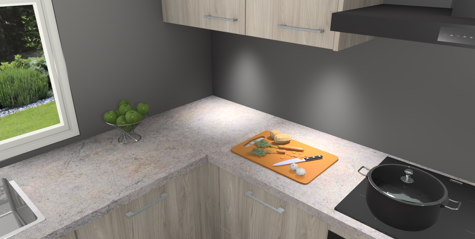 - Bij een hoekwerkblad zijn de hoeken in gevreesd en op maat gemaakt