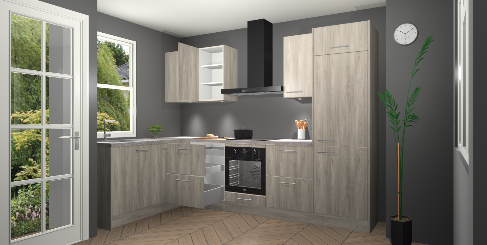 Bent u op zoek naar een strakke, moderne hoekkeuken die uw huis oppept en een moderne uitstraling geeft? Kijk dan niet verder dan de olm keuken Beijing. Deze verbluffende hoekkeuken tilt hedendaags design naar een hoger niveau. Qua stijl is deze chique hoekkeuken voorzien van olm accenten, om een strakke maar opvallende look te creëren. De binnenkant van de kasten is afgewerkt in dezelfde prachtige olm kleur voor extra esthetische aantrekkingskracht.