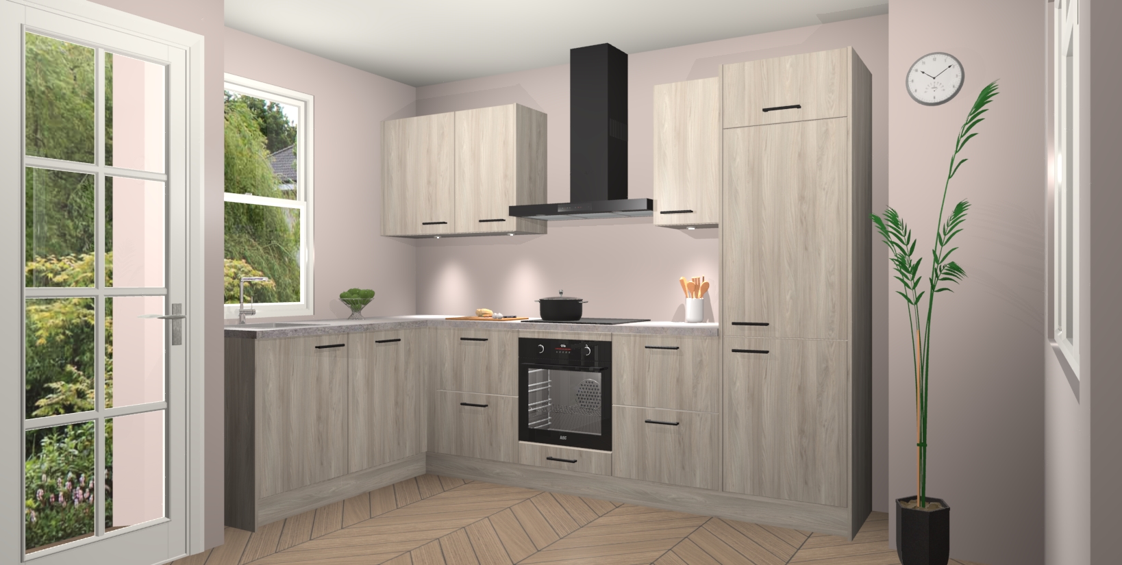U hoeft zich ook geen zorgen te maken over een gebrek aan opbergruimte, want deze keuken heeft voldoende opbergmogelijkheden zowel boven als onder het aanrecht. Om het leven nog makkelijker te maken, wordt deze moderne hoekkeuken geleverd met 5 ingebouwde apparaten, waaronder een oven, inductiekookplaat, afzuigkap, vaatwasser en koelkast, zodat u in een mum van tijd klaar bent voor actie!