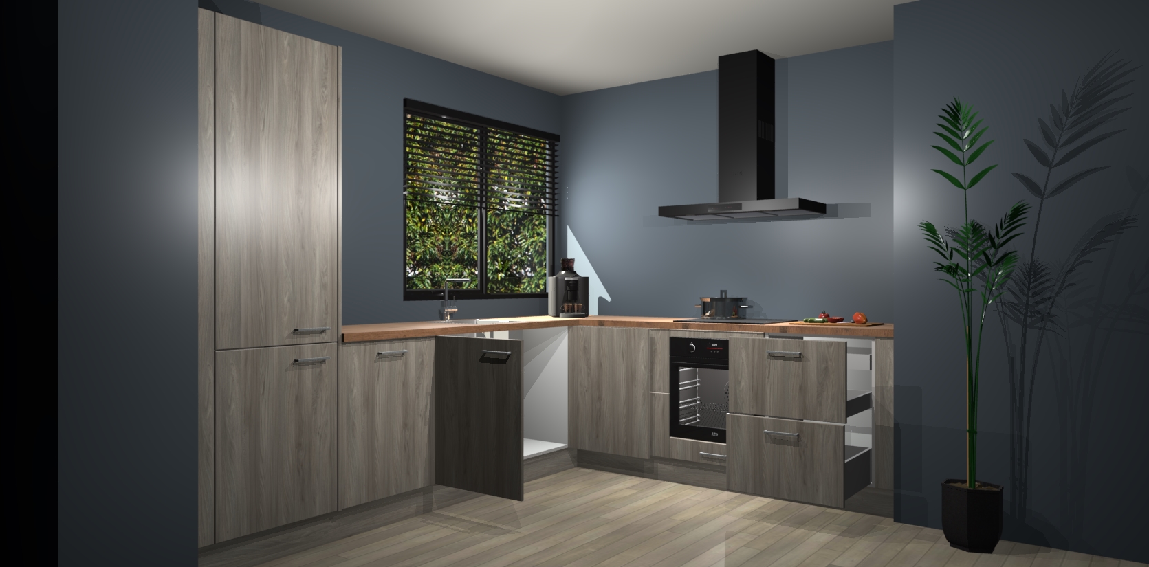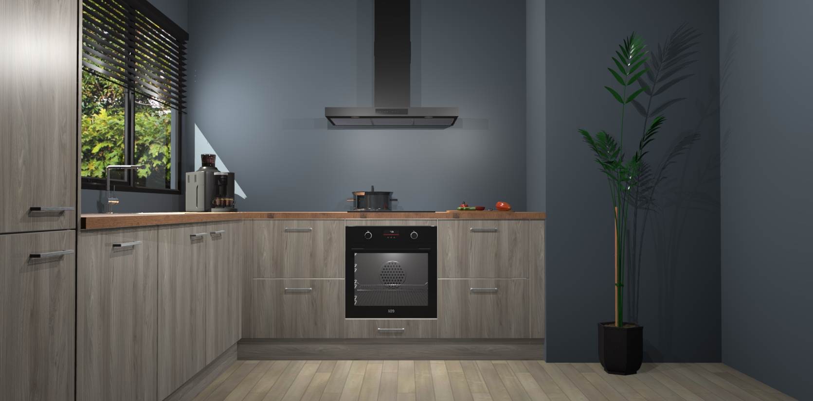 Met een modern, tijdloos design en ruime opslagruimte, zult u zich in no-time thuis voelen in uw nieuwe keuken. Uw leven wordt eenvoudiger met de soft-close deuren die voor het ultieme stille comfort zorgen - geen geluid dat u stoort terwijl u kookt. Ook is de keuken voorzien van 5 ingebouwde apparaten: een oven, inductie kookplaat, afzuigkap, vaatwasser en koelkast. Deze kunnen gemakkelijk na bestelling worden bijgewerkt naar AEG - waardoor uw luxe ervaring compleet is.