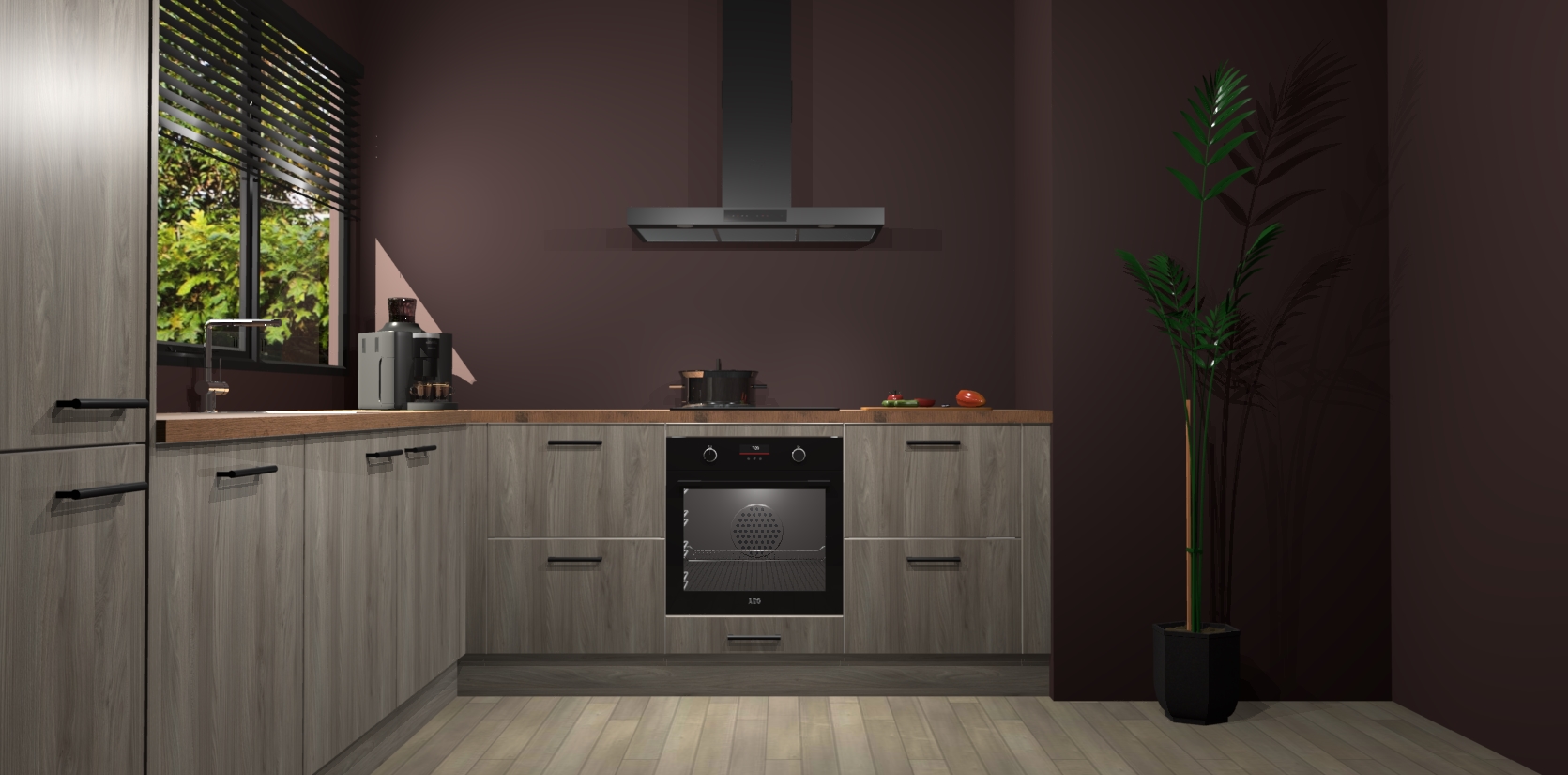 Met een modern, tijdloos design en ruime opslagruimte, zult u zich in no-time thuis voelen in uw nieuwe keuken. Uw leven wordt eenvoudiger met de soft-close deuren die voor het ultieme stille comfort zorgen - geen geluid dat u stoort terwijl u kookt. Ook is de keuken voorzien van 5 ingebouwde apparaten: een oven, inductie kookplaat, afzuigkap, vaatwasser en koelkast. Deze kunnen gemakkelijk na bestelling worden bijgewerkt naar AEG - waardoor uw luxe ervaring compleet is.
