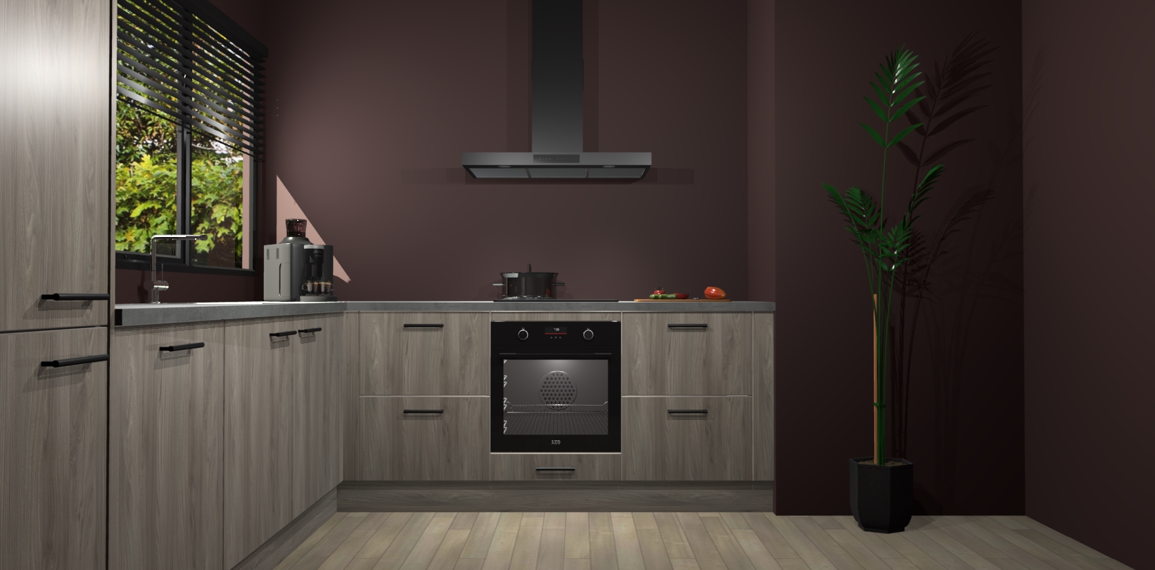 Met een modern, tijdloos design en ruime opslagruimte, zult u zich in no-time thuis voelen in uw nieuwe keuken. Uw leven wordt eenvoudiger met de soft-close deuren die voor het ultieme stille comfort zorgen - geen geluid dat u stoort terwijl u kookt. Ook is de keuken voorzien van 5 ingebouwde apparaten: een oven, inductie kookplaat, afzuigkap, vaatwasser en koelkast. Deze kunnen gemakkelijk na bestelling worden bijgewerkt naar AEG - waardoor uw luxe ervaring compleet is.