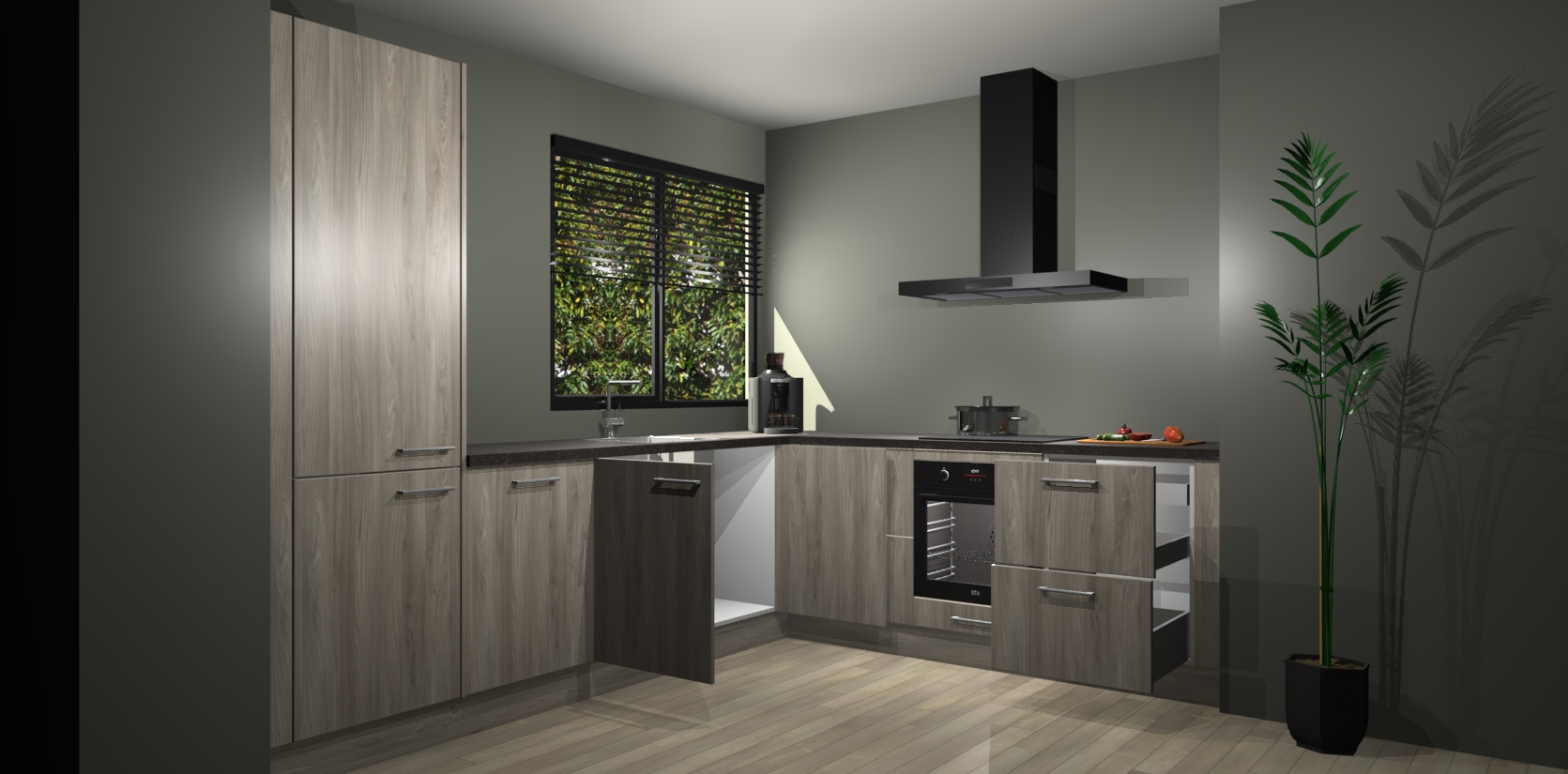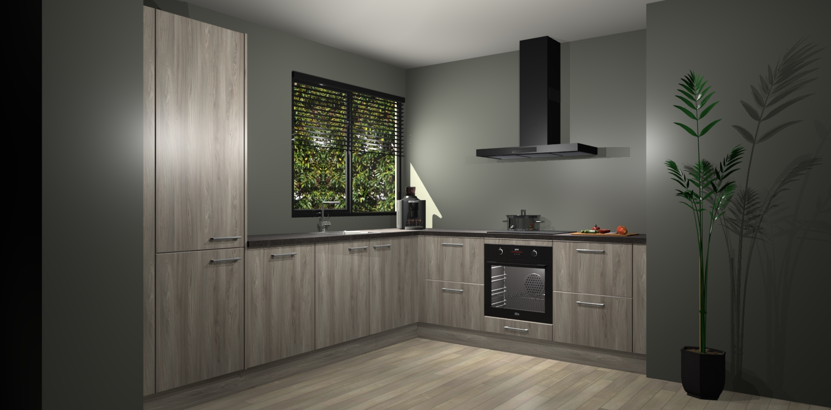 Met een modern, tijdloos design en ruime opslagruimte, zult u zich in no-time thuis voelen in uw nieuwe keuken. Uw leven wordt eenvoudiger met de soft-close deuren die voor het ultieme stille comfort zorgen - geen geluid dat u stoort terwijl u kookt. Ook is de keuken voorzien van 5 ingebouwde apparaten: een oven, inductie kookplaat, afzuigkap, vaatwasser en koelkast. Deze kunnen gemakkelijk na bestelling worden bijgewerkt naar AEG - waardoor uw luxe ervaring compleet is.