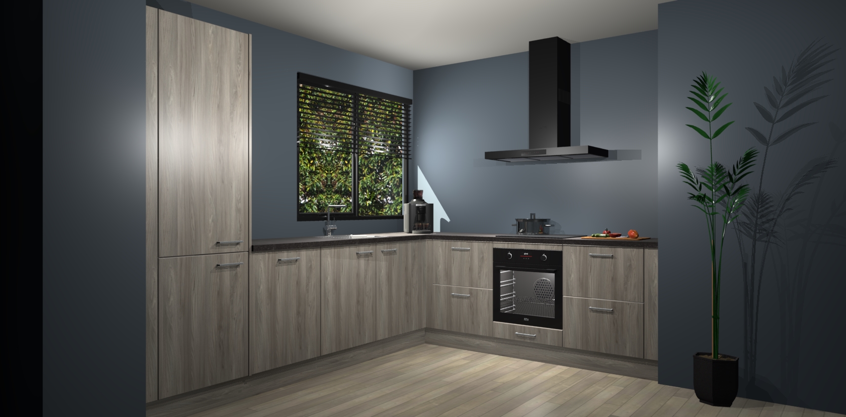 Met een modern, tijdloos design en ruime opslagruimte, zult u zich in no-time thuis voelen in uw nieuwe keuken. Uw leven wordt eenvoudiger met de soft-close deuren die voor het ultieme stille comfort zorgen - geen geluid dat u stoort terwijl u kookt. Ook is de keuken voorzien van 5 ingebouwde apparaten: een oven, inductie kookplaat, afzuigkap, vaatwasser en koelkast. Deze kunnen gemakkelijk na bestelling worden bijgewerkt naar AEG - waardoor uw luxe ervaring compleet is.