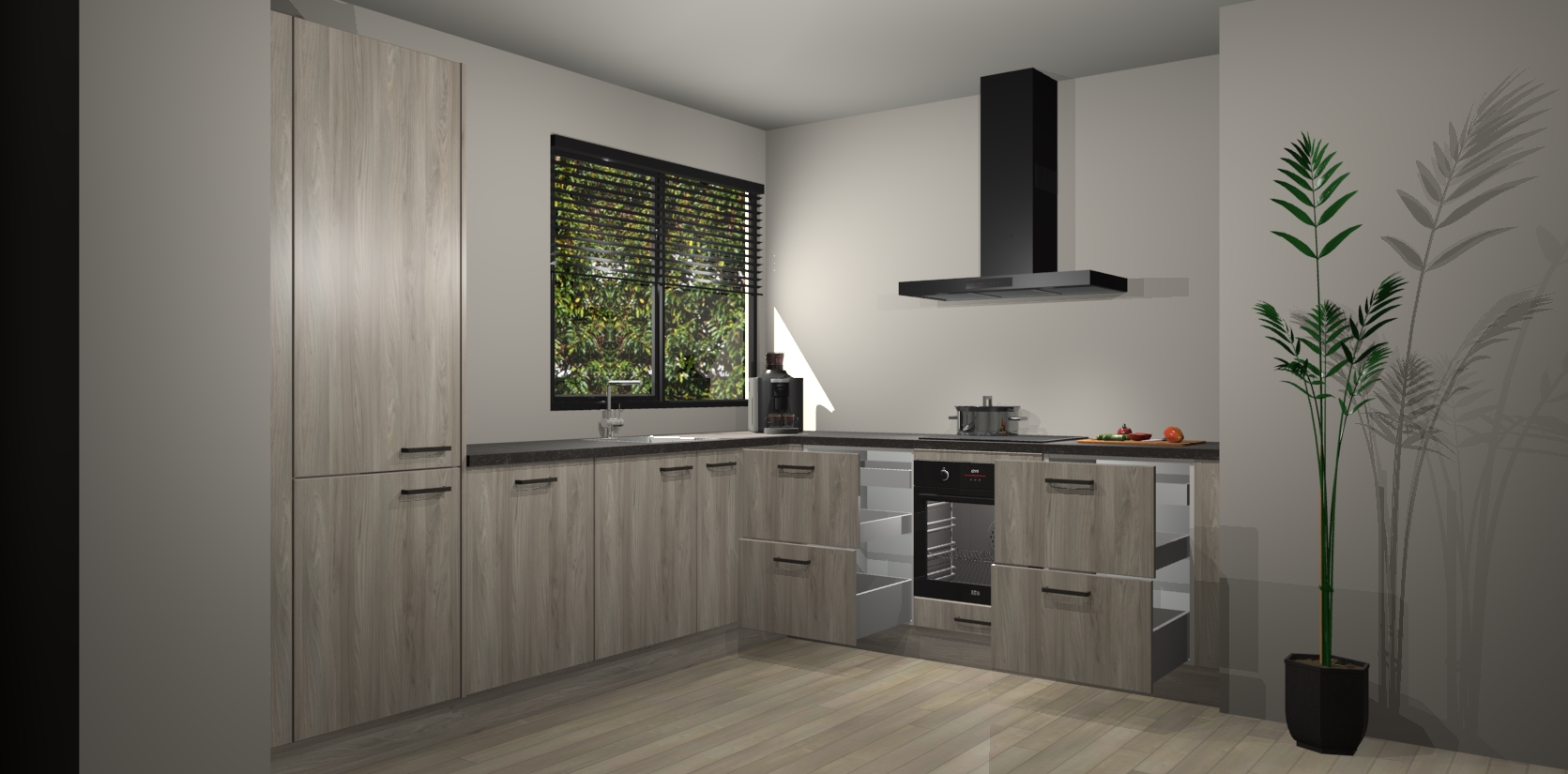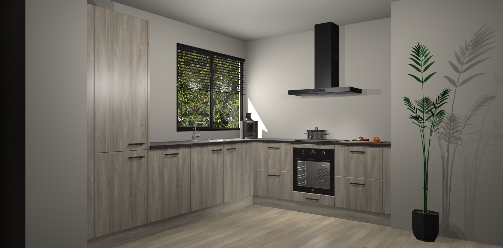 Met een modern, tijdloos design en ruime opslagruimte, zult u zich in no-time thuis voelen in uw nieuwe keuken. Uw leven wordt eenvoudiger met de soft-close deuren die voor het ultieme stille comfort zorgen - geen geluid dat u stoort terwijl u kookt. Ook is de keuken voorzien van 5 ingebouwde apparaten: een oven, inductie kookplaat, afzuigkap, vaatwasser en koelkast. Deze kunnen gemakkelijk na bestelling worden bijgewerkt naar AEG - waardoor uw luxe ervaring compleet is.