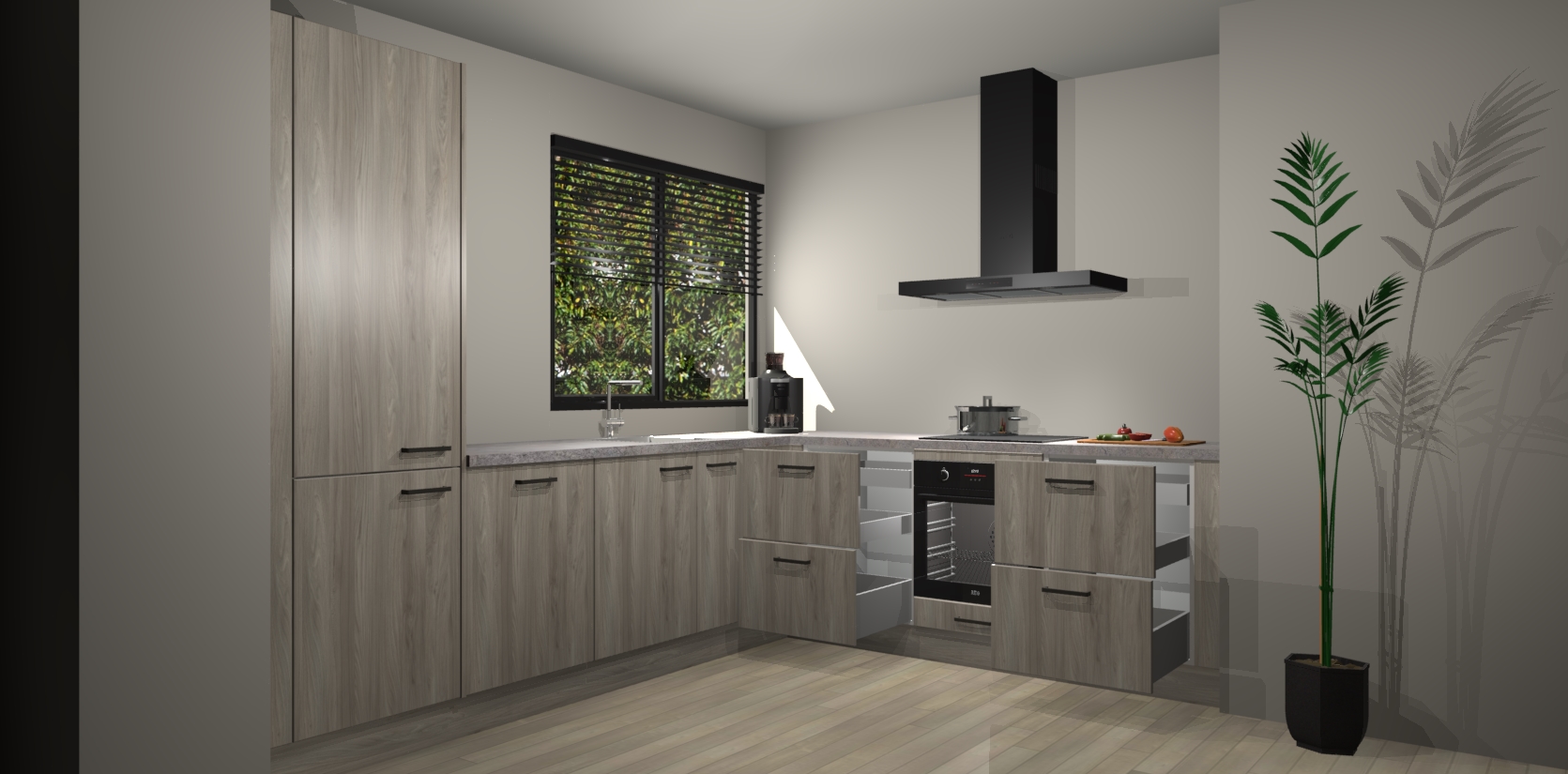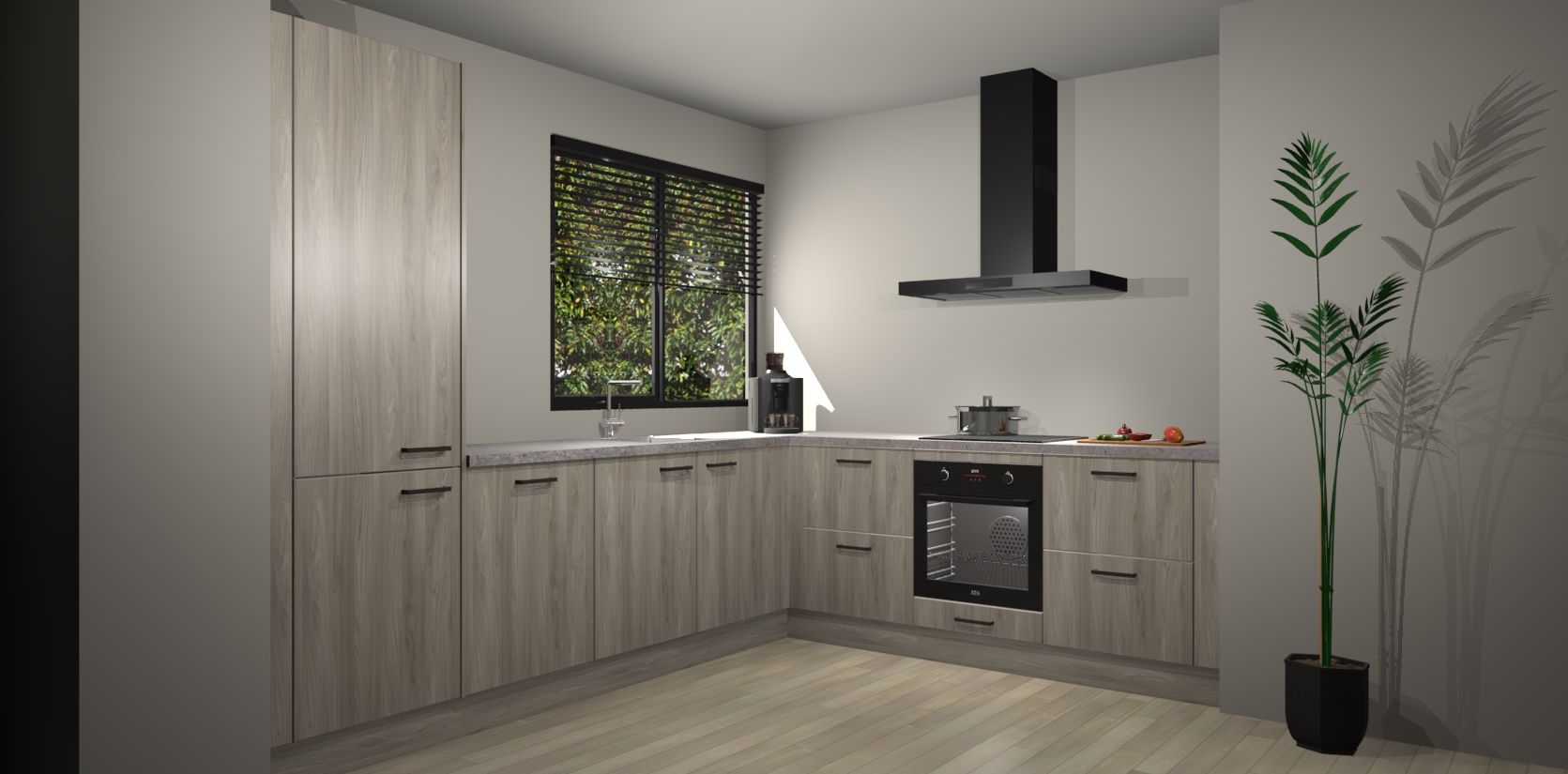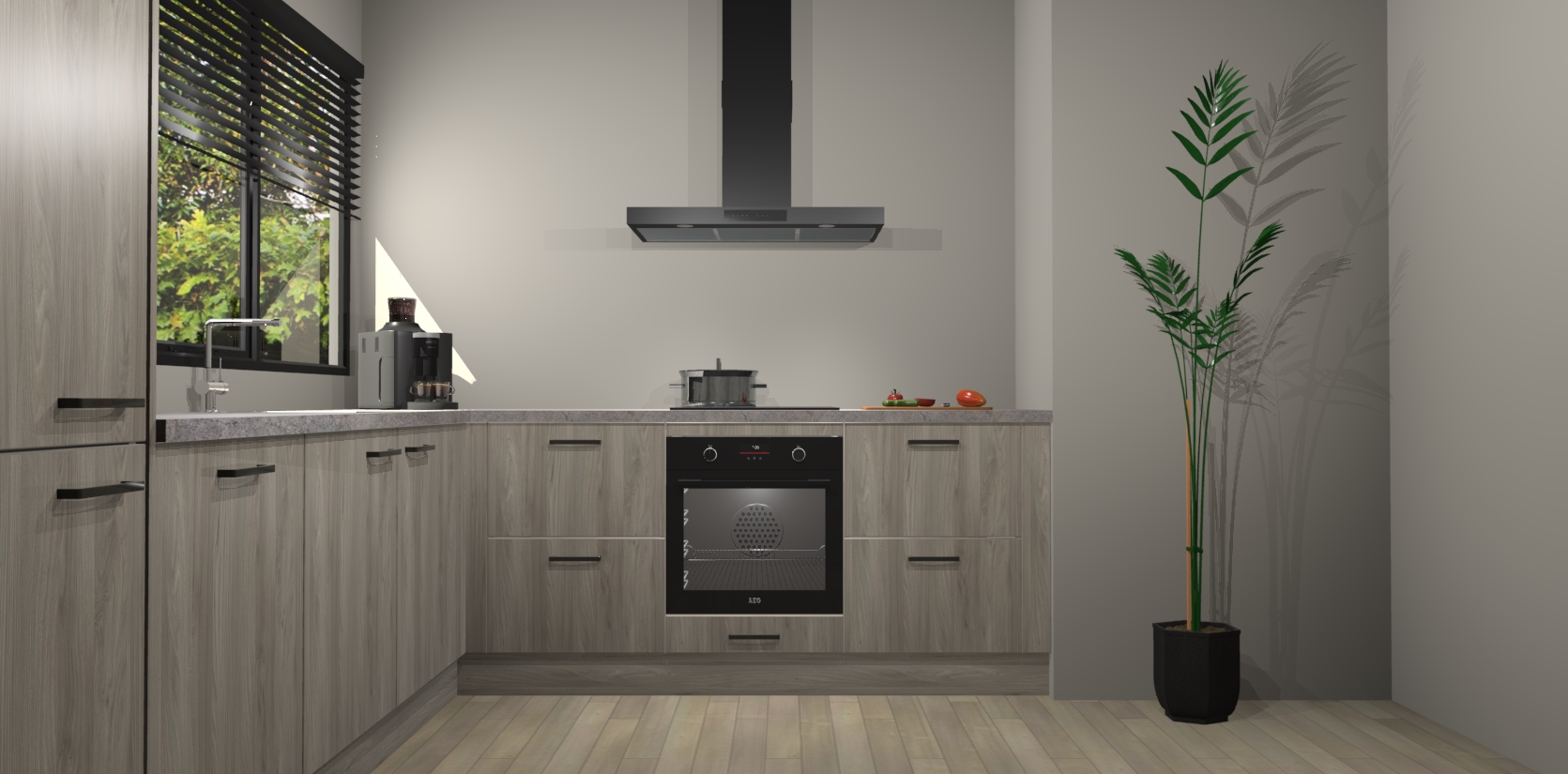 Met een modern, tijdloos design en ruime opslagruimte, zult u zich in no-time thuis voelen in uw nieuwe keuken. Uw leven wordt eenvoudiger met de soft-close deuren die voor het ultieme stille comfort zorgen - geen geluid dat u stoort terwijl u kookt. Ook is de keuken voorzien van 5 ingebouwde apparaten: een oven, inductie kookplaat, afzuigkap, vaatwasser en koelkast. Deze kunnen gemakkelijk na bestelling worden bijgewerkt naar AEG - waardoor uw luxe ervaring compleet is.