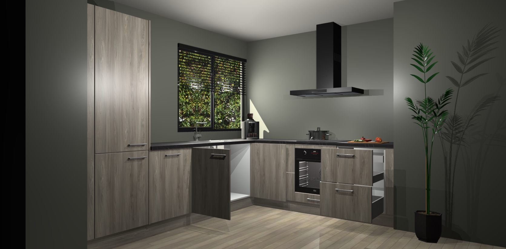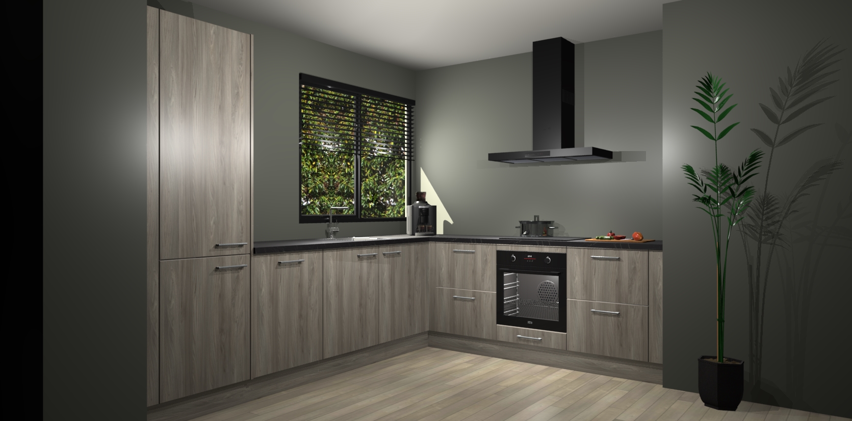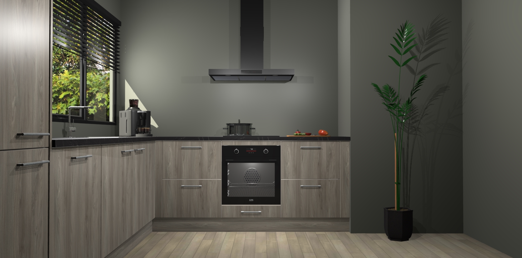 Met een modern, tijdloos design en ruime opslagruimte, zult u zich in no-time thuis voelen in uw nieuwe keuken. Uw leven wordt eenvoudiger met de soft-close deuren die voor het ultieme stille comfort zorgen - geen geluid dat u stoort terwijl u kookt. Ook is de keuken voorzien van 5 ingebouwde apparaten: een oven, inductie kookplaat, afzuigkap, vaatwasser en koelkast. Deze kunnen gemakkelijk na bestelling worden bijgewerkt naar AEG - waardoor uw luxe ervaring compleet is.