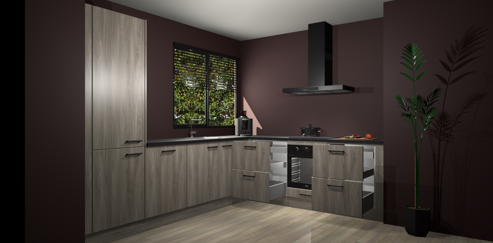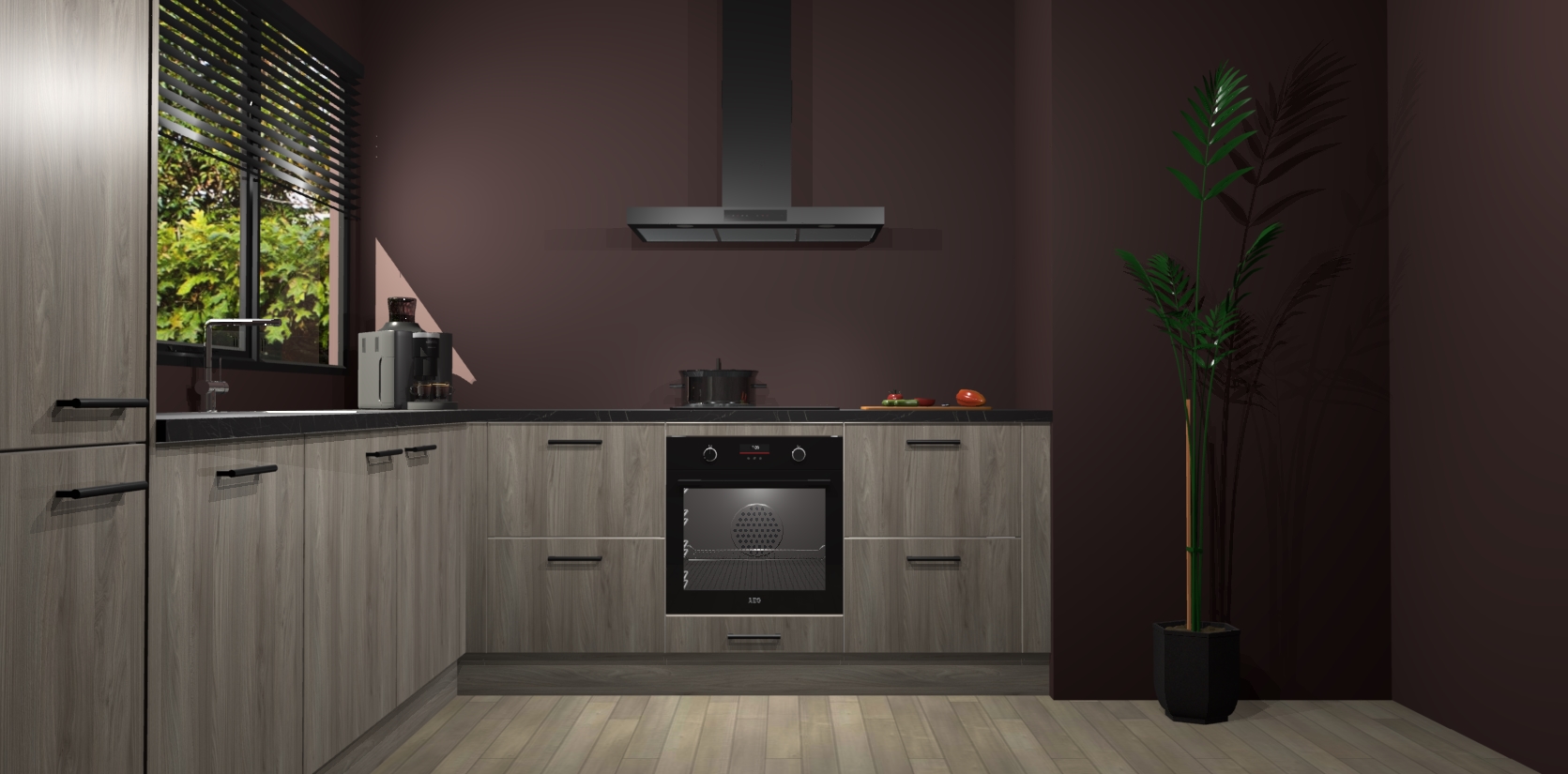 Met een modern, tijdloos design en ruime opslagruimte, zult u zich in no-time thuis voelen in uw nieuwe keuken. Uw leven wordt eenvoudiger met de soft-close deuren die voor het ultieme stille comfort zorgen - geen geluid dat u stoort terwijl u kookt. Ook is de keuken voorzien van 5 ingebouwde apparaten: een oven, inductie kookplaat, afzuigkap, vaatwasser en koelkast. Deze kunnen gemakkelijk na bestelling worden bijgewerkt naar AEG - waardoor uw luxe ervaring compleet is.