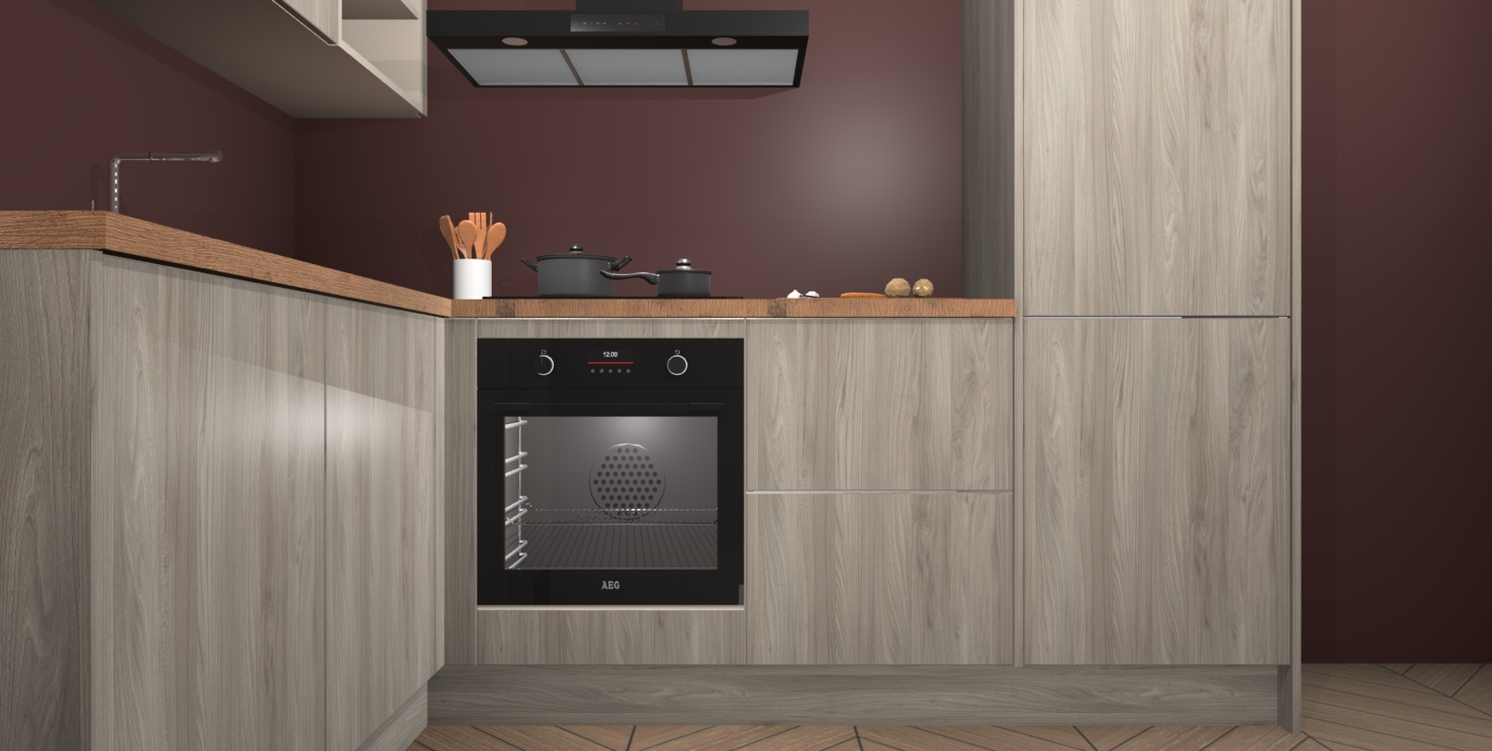 Inclusief plinten, stelpoten en werkblad