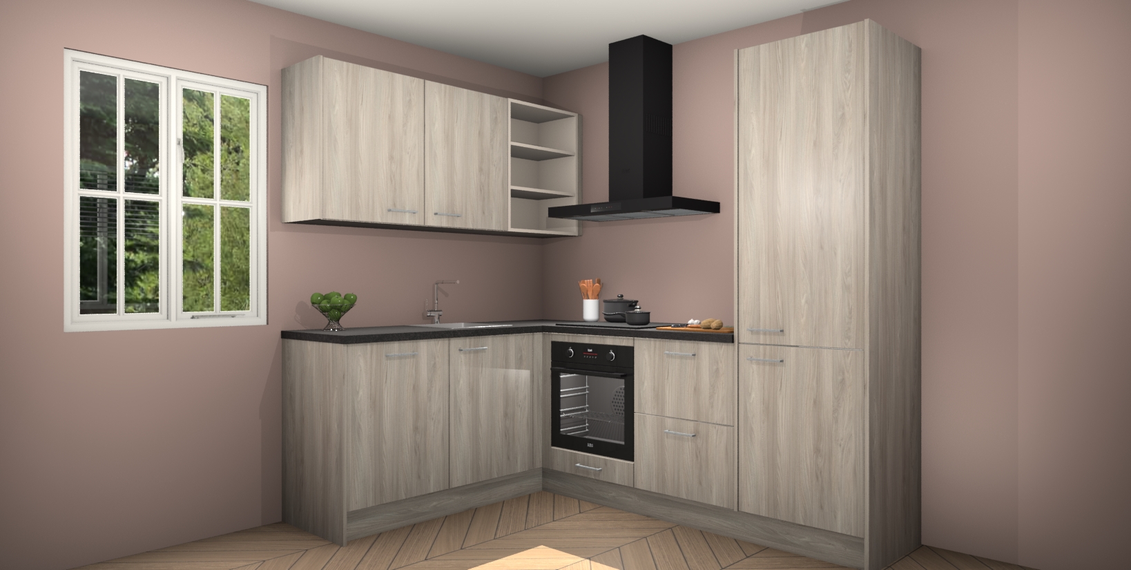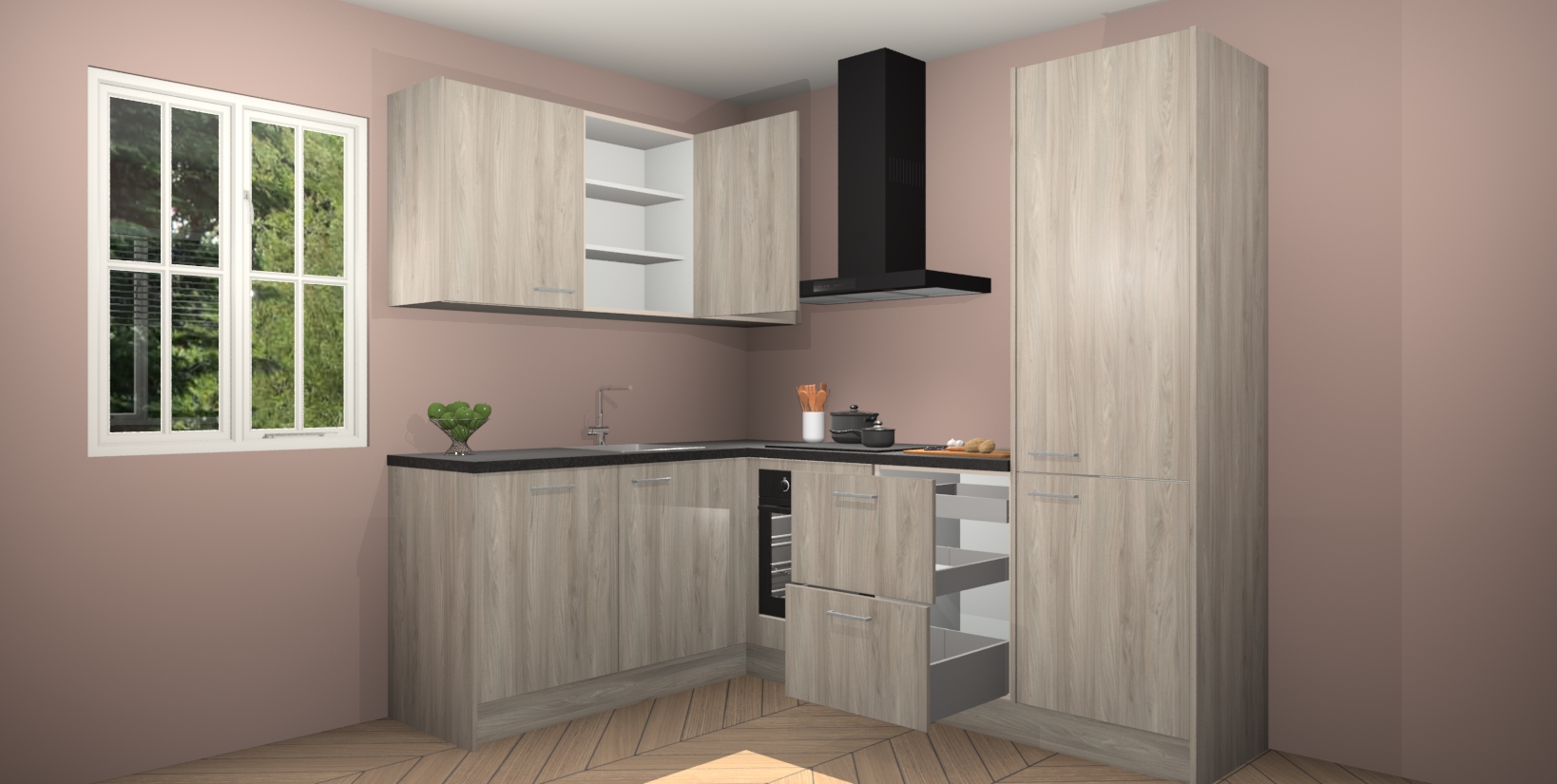 Maak kennis met de Olm keuken Boekarest, een moderne hoekkeuken waar al uw vrienden en familie jaloers op zullen zijn! Het verbluffende mooie ontwerp past in elk interieur en is een ideale keuze voor wie op zoek is naar een klassieke, maar verfijnde look.