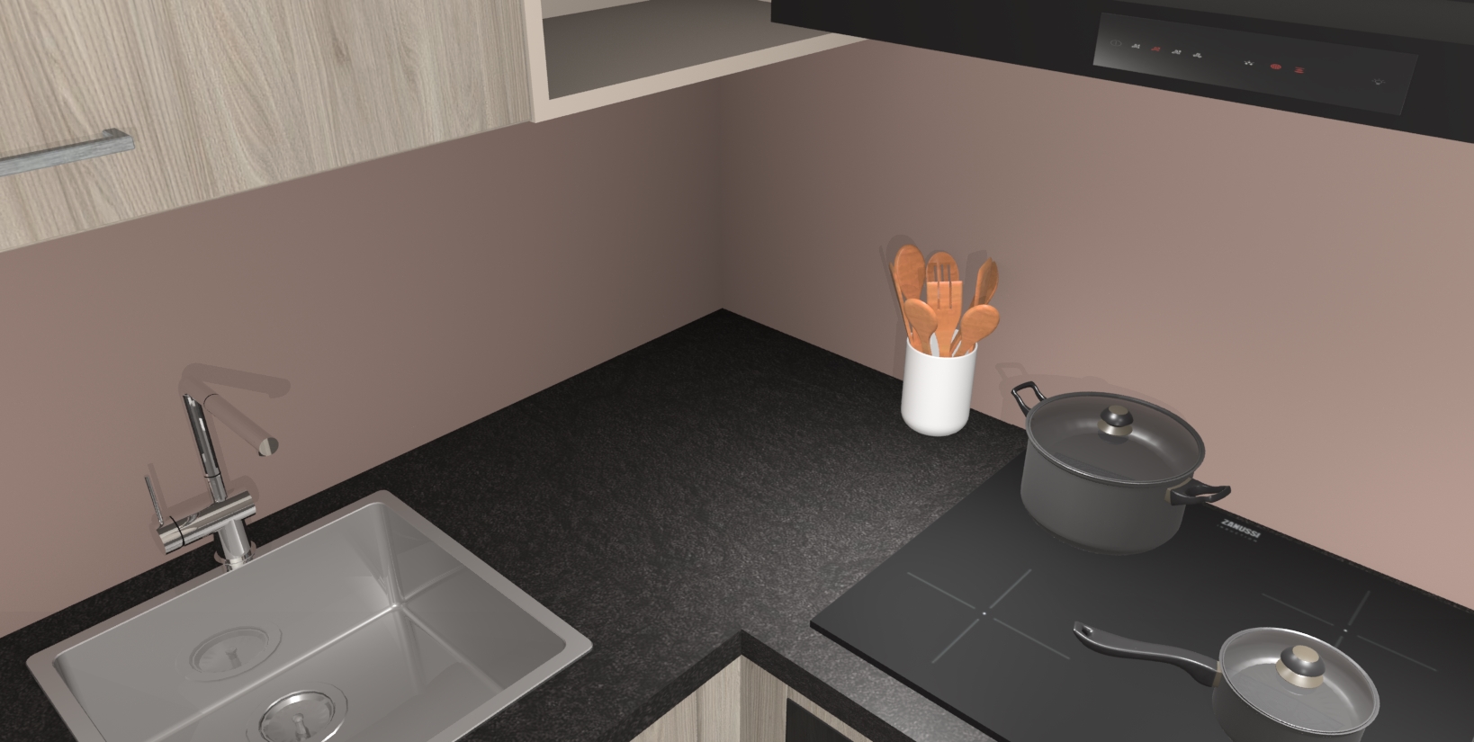 - Uitsparing van kookplaat, spoelbak en kraan dient u zelf te verzorgen.