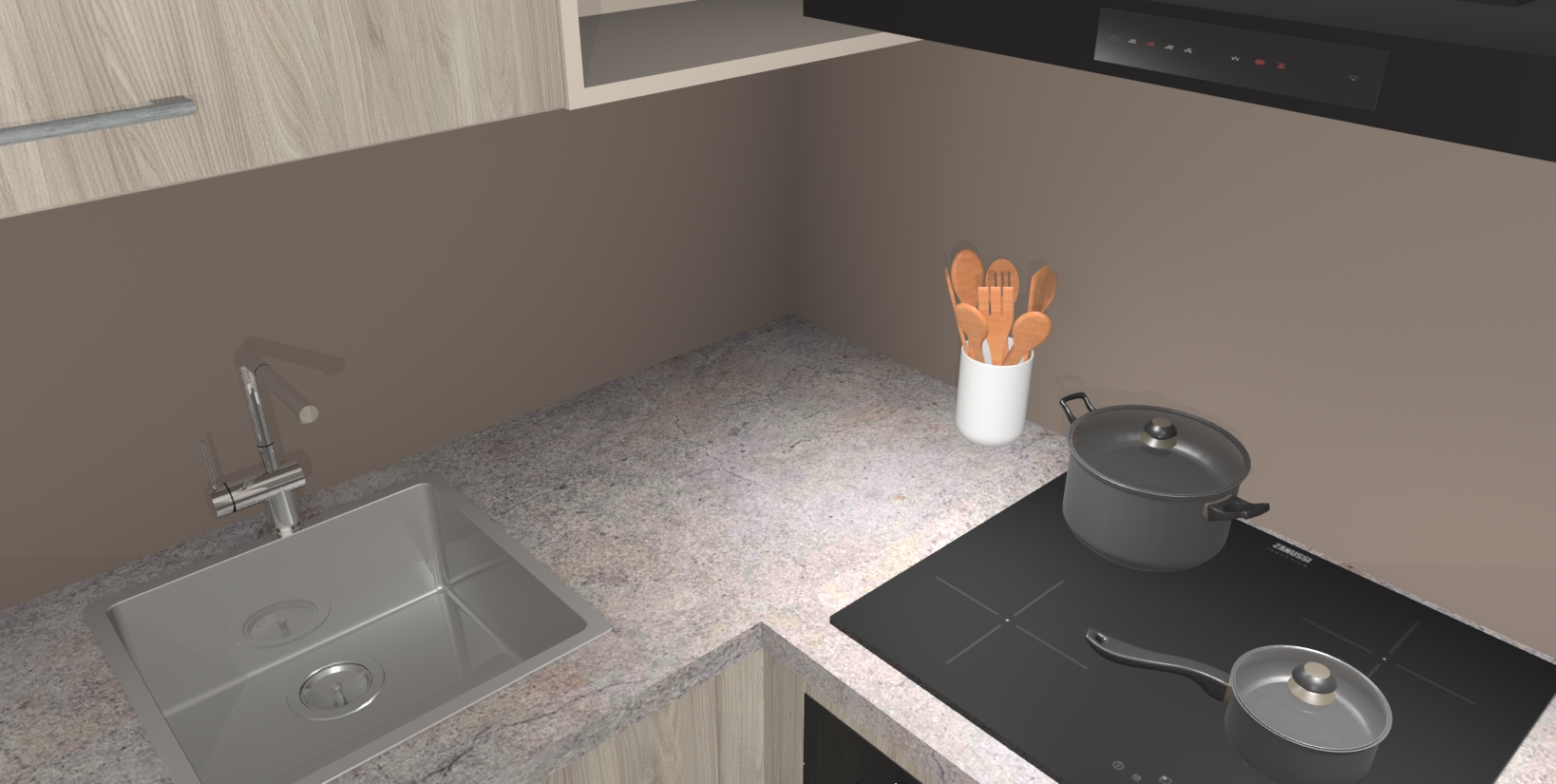 - Uitsparing van kookplaat, spoelbak en kraan dient u zelf te verzorgen.