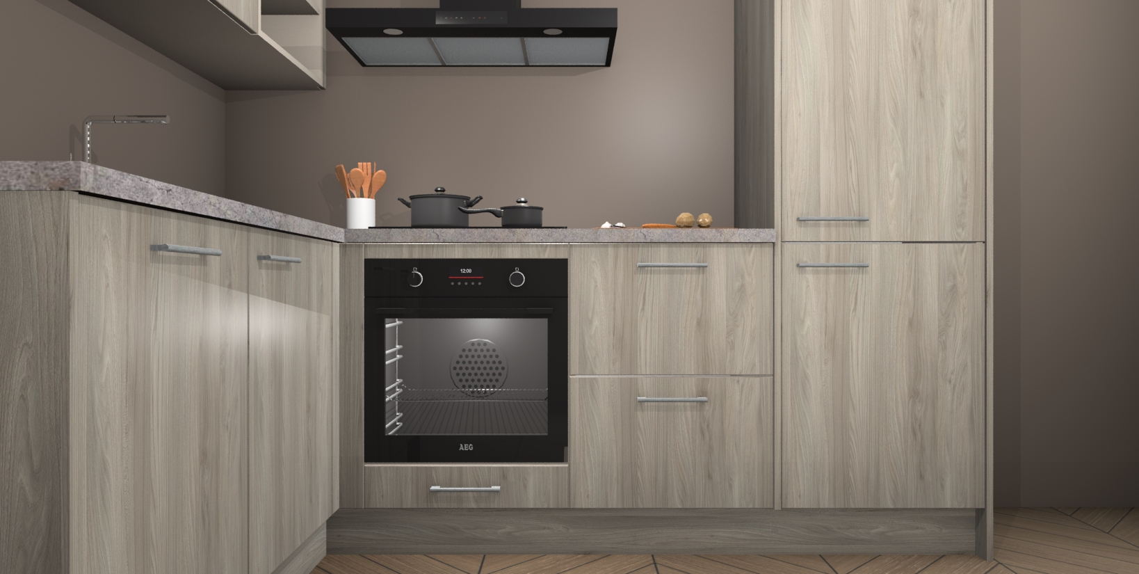 Voor nog meer gemak heeft deze keuken vijf ingebouwde apparaten - oven, inductiekookplaat, afzuigkap, vaatwasser en koelkast. Bovendien hebben alle kasten softclose deuren voor extra comfort bij het sluiten. Dit alles voor een verrassend lage vaste prijs - u vindt nergens anders een betere deal!