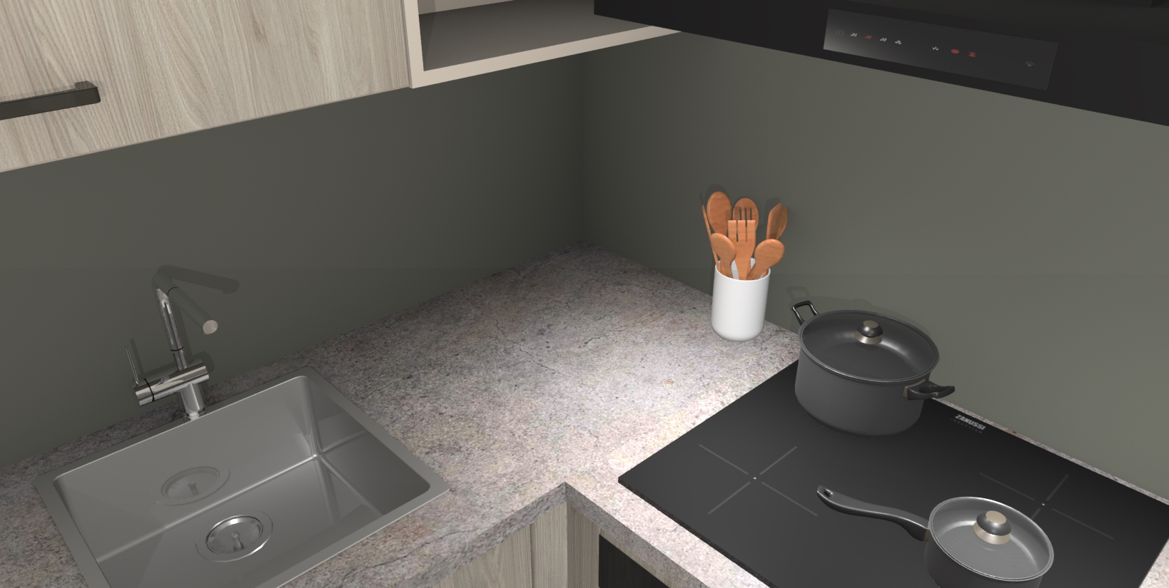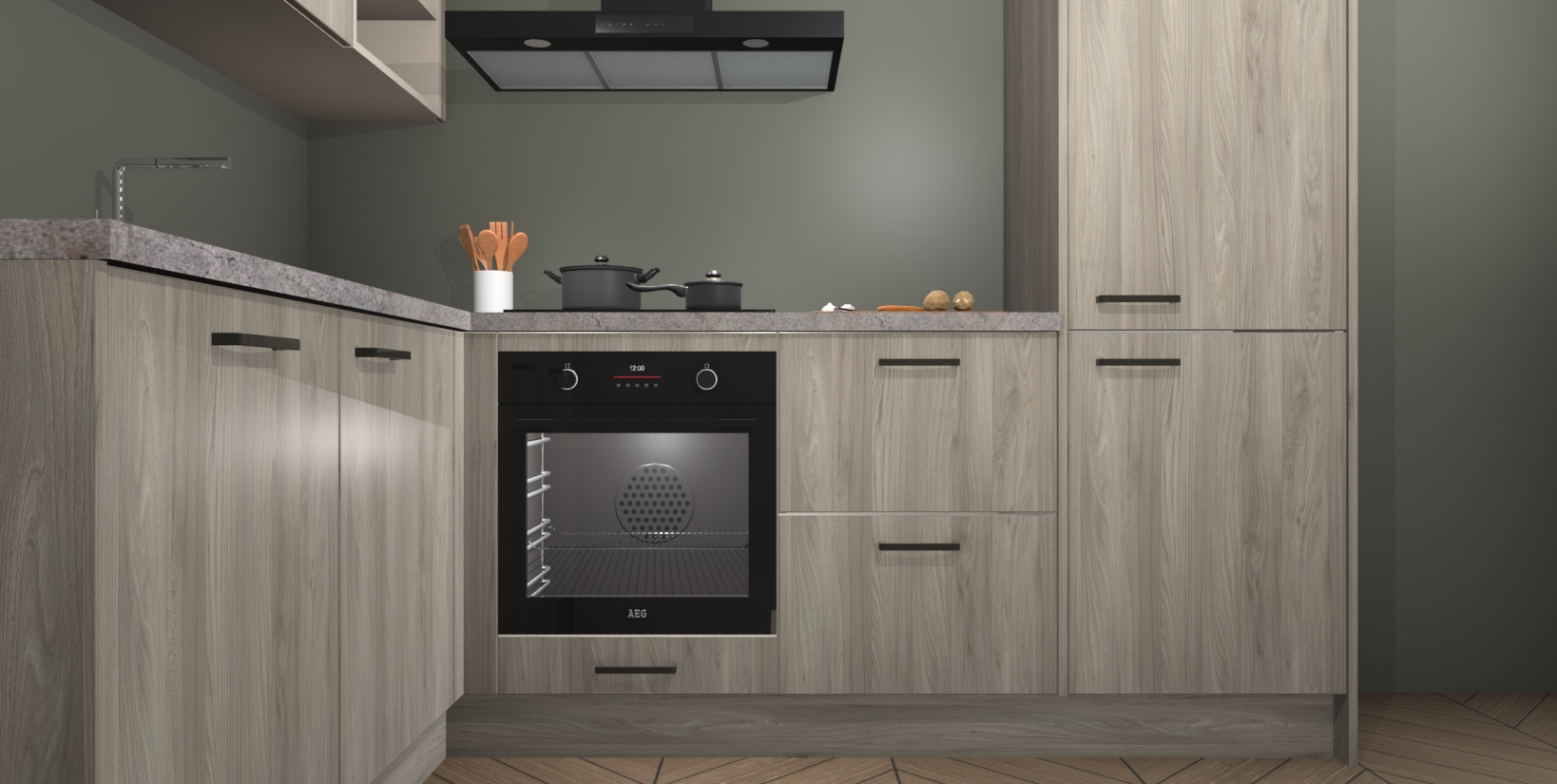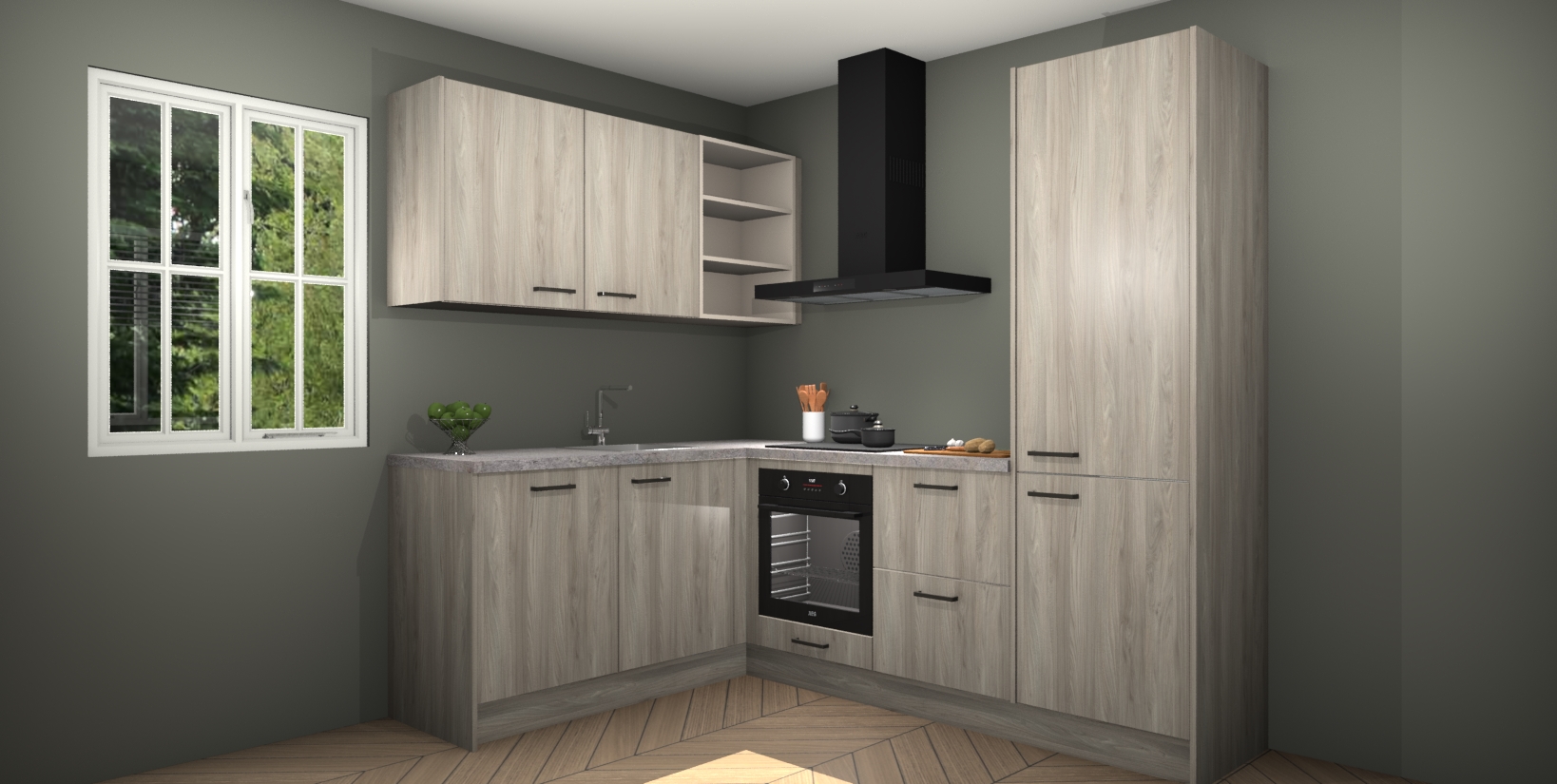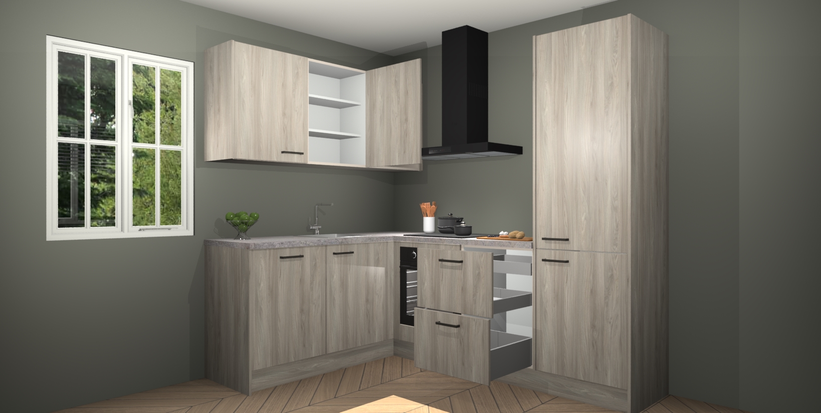 Maak kennis met de Olm keuken Boekarest, een moderne hoekkeuken waar al uw vrienden en familie jaloers op zullen zijn! Het verbluffende mooie ontwerp past in elk interieur en is een ideale keuze voor wie op zoek is naar een klassieke, maar verfijnde look.