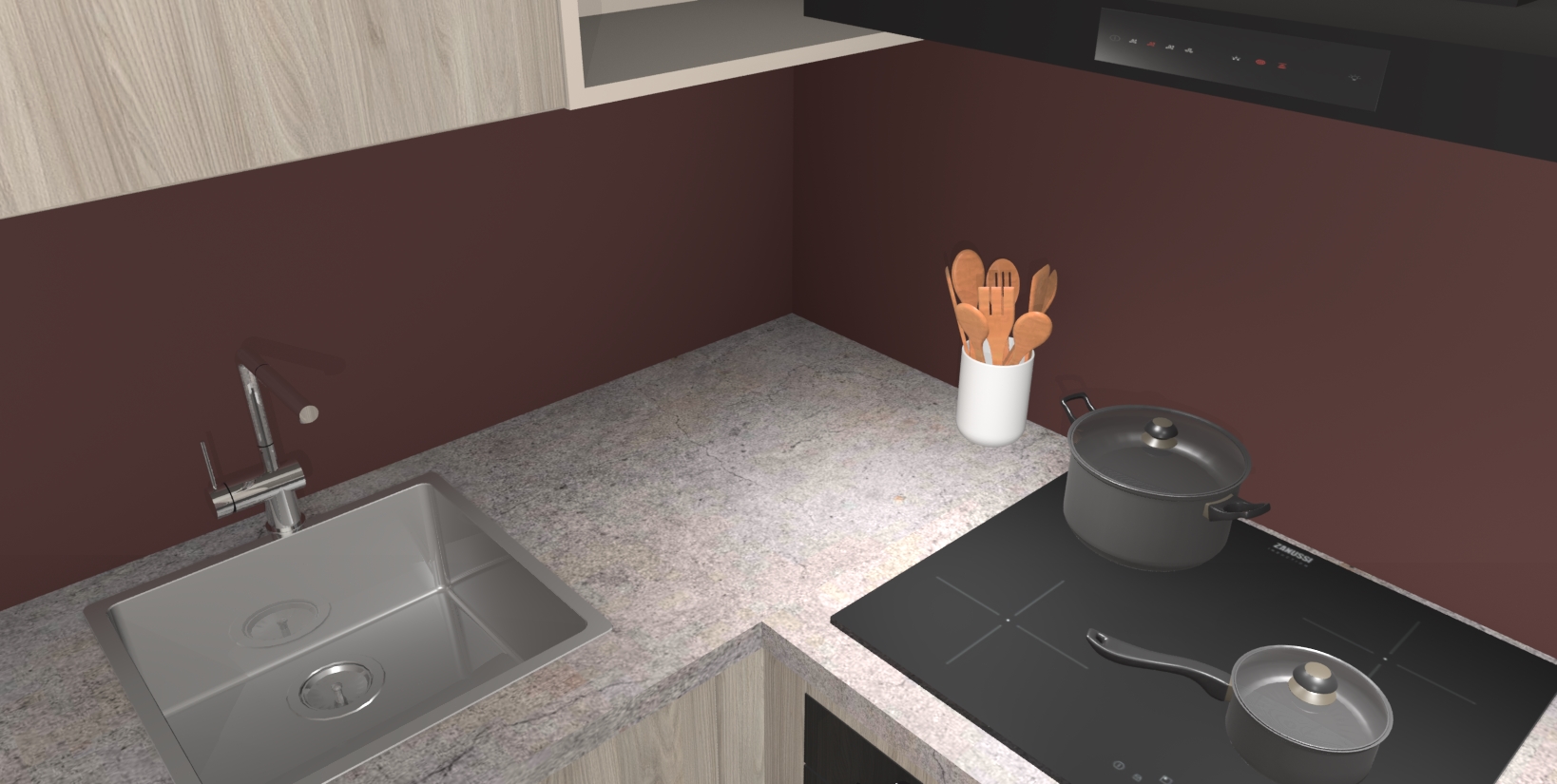 - Uitsparing van kookplaat, spoelbak en kraan dient u zelf te verzorgen.
