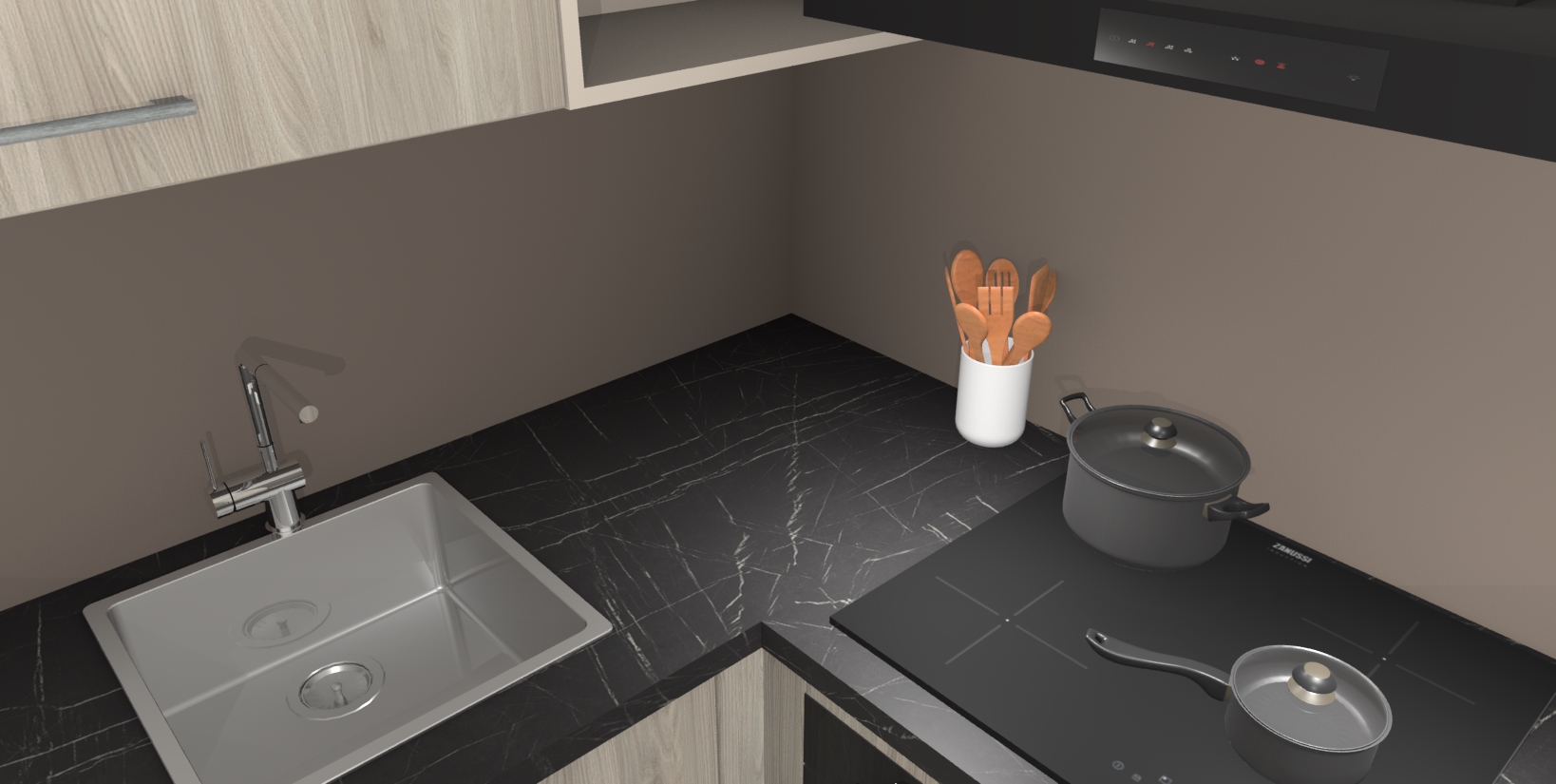 - Uitsparing van kookplaat, spoelbak en kraan dient u zelf te verzorgen.