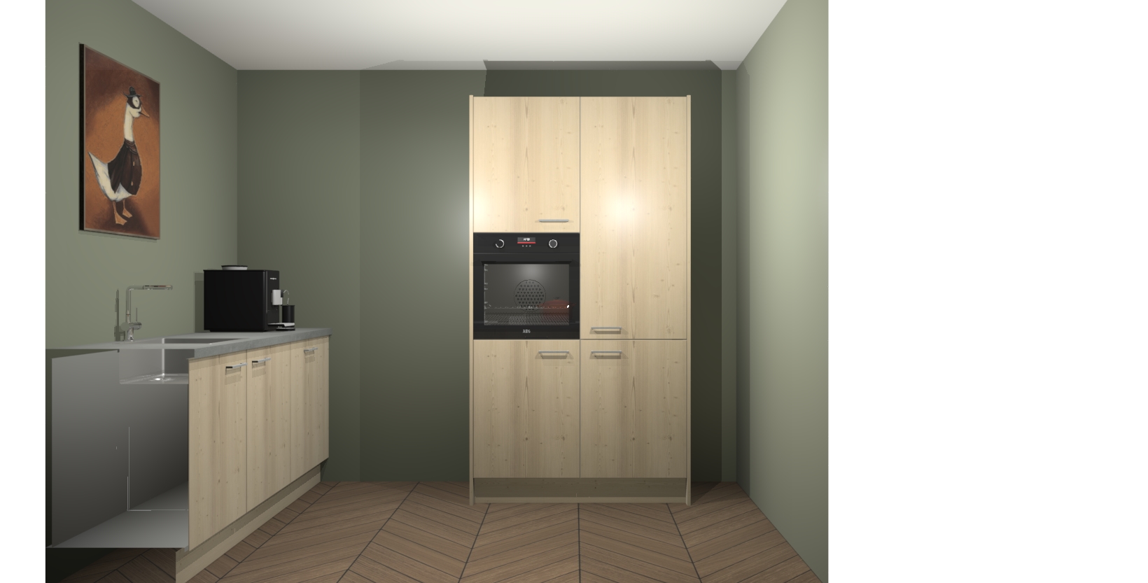 Met een modern, tijdloos design en ruime opslagruimte, zult u zich in no-time thuis voelen in uw nieuwe keuken. Uw leven wordt eenvoudiger met de soft-close deuren die voor het ultieme stille comfort zorgen - geen geluid dat u stoort terwijl u kookt. Ook is de keuken voorzien van 5 ingebouwde apparaten: een oven, inductie kookplaat, afzuigkap, vaatwasser en koelkast. Deze kunnen gemakkelijk na bestelling worden bijgewerkt naar AEG - waardoor uw luxe ervaring compleet is.