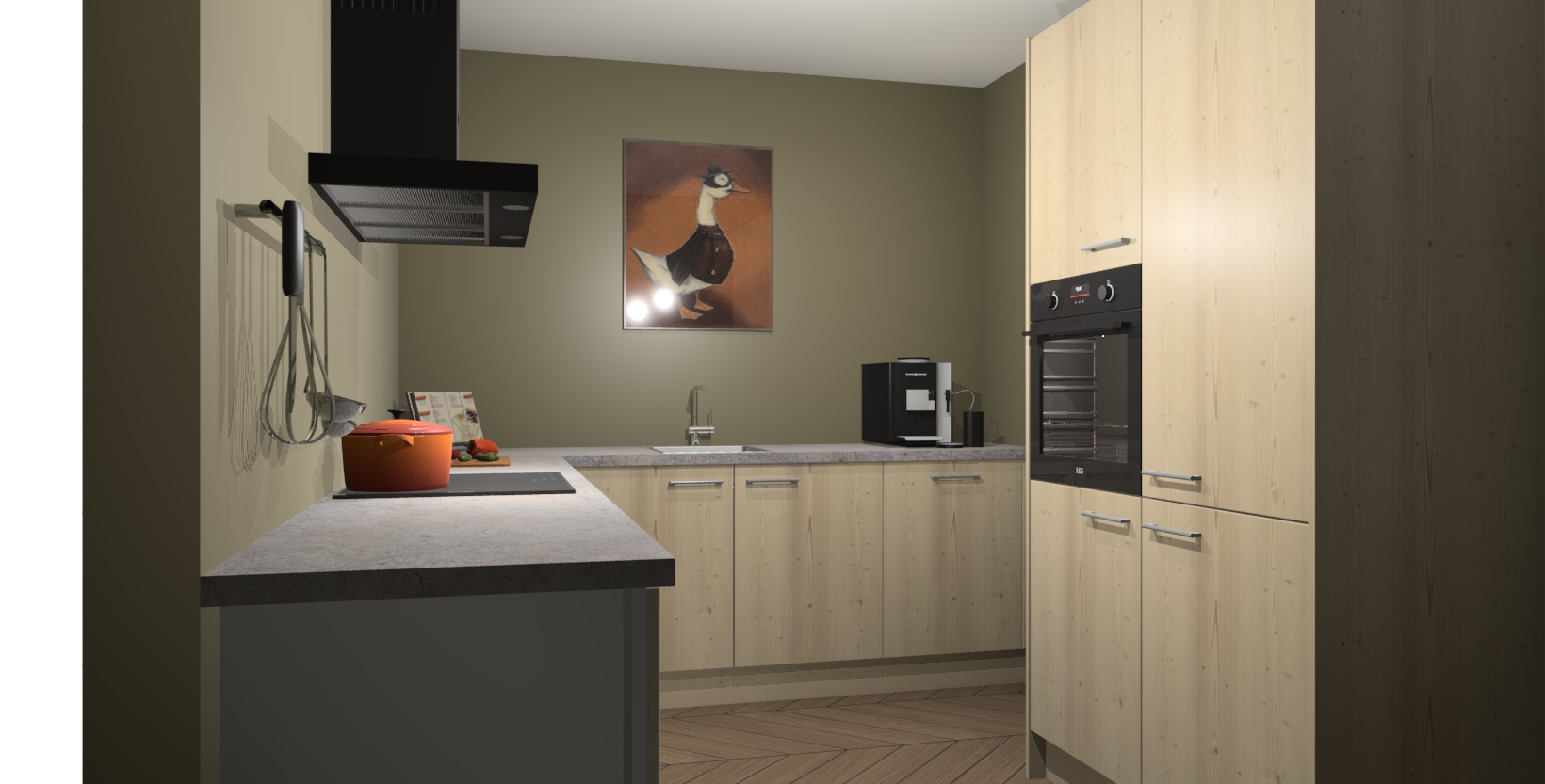 Met een modern, tijdloos design en ruime opslagruimte, zult u zich in no-time thuis voelen in uw nieuwe keuken. Uw leven wordt eenvoudiger met de soft-close deuren die voor het ultieme stille comfort zorgen - geen geluid dat u stoort terwijl u kookt. Ook is de keuken voorzien van 5 ingebouwde apparaten: een oven, inductie kookplaat, afzuigkap, vaatwasser en koelkast. Deze kunnen gemakkelijk na bestelling worden bijgewerkt naar AEG - waardoor uw luxe ervaring compleet is.
