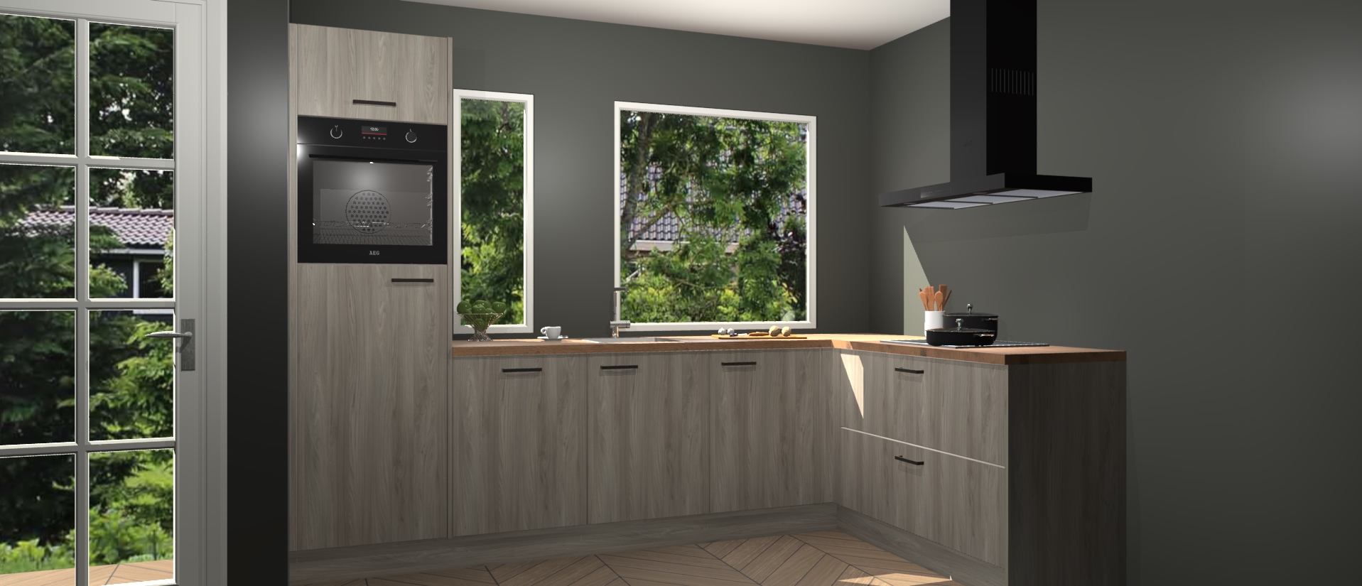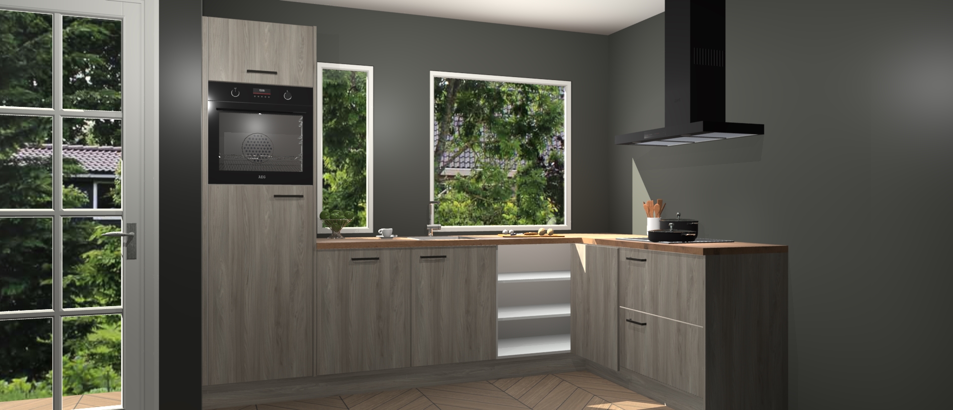 Deze complete keuken wordt geleverd met 5 inbouwapparaten: een oven, inductiekookplaat, afzuigkap, vaatwasser en koelkast. De toestellen kunnen na bestelling ook gemakkelijk worden opgewaardeerd naar AEG. Bovendien is elke deur in deze keuken voorzien van handige softclose technologie voor eenvoudig gebruik! Als een leuke toevoeging zit in deze keuken ook een carrousel, zo hoef je niet meer de hoek in duiken om iets te pakken.