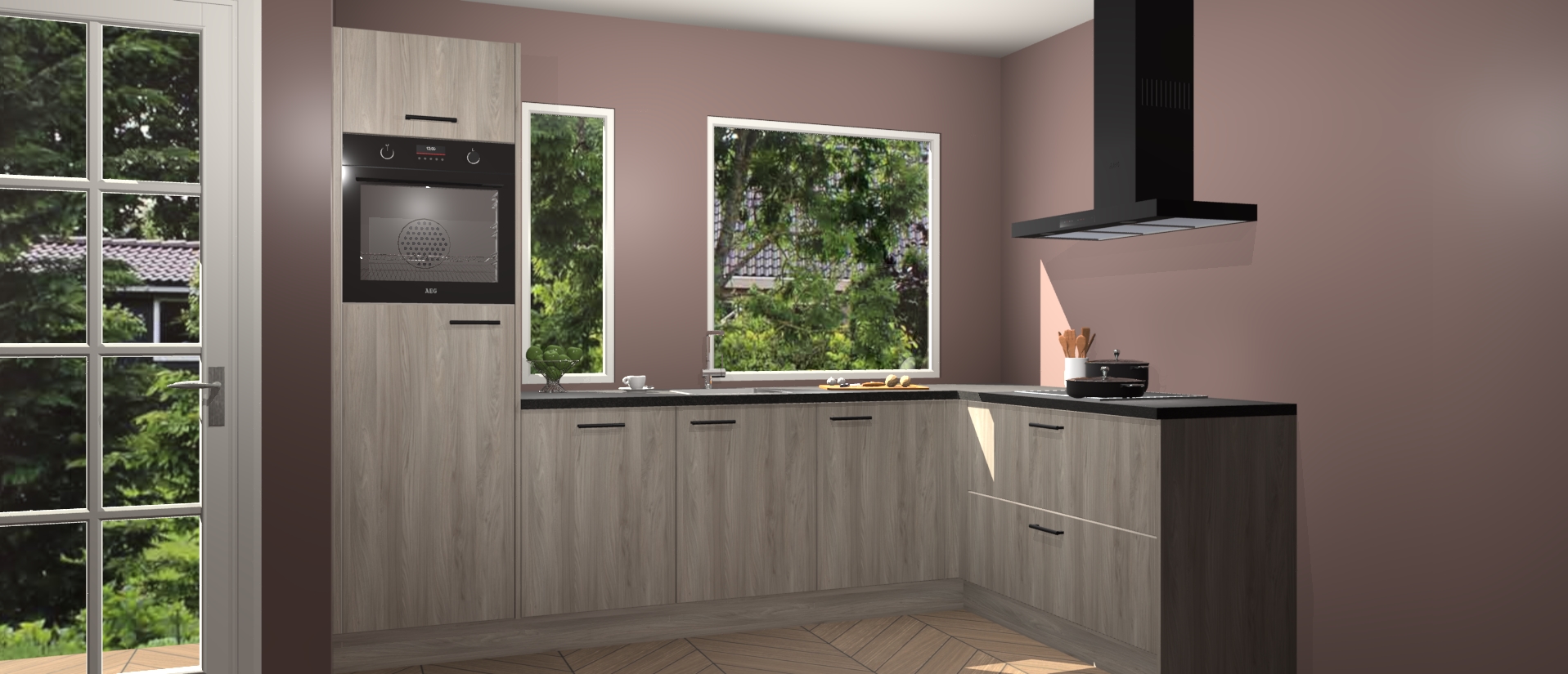Deze complete keuken wordt geleverd met 5 inbouwapparaten: een oven, inductiekookplaat, afzuigkap, vaatwasser en koelkast. De toestellen kunnen na bestelling ook gemakkelijk worden opgewaardeerd naar AEG. Bovendien is elke deur in deze keuken voorzien van handige softclose technologie voor eenvoudig gebruik! Als een leuke toevoeging zit in deze keuken ook een carrousel, zo hoef je niet meer de hoek in duiken om iets te pakken.