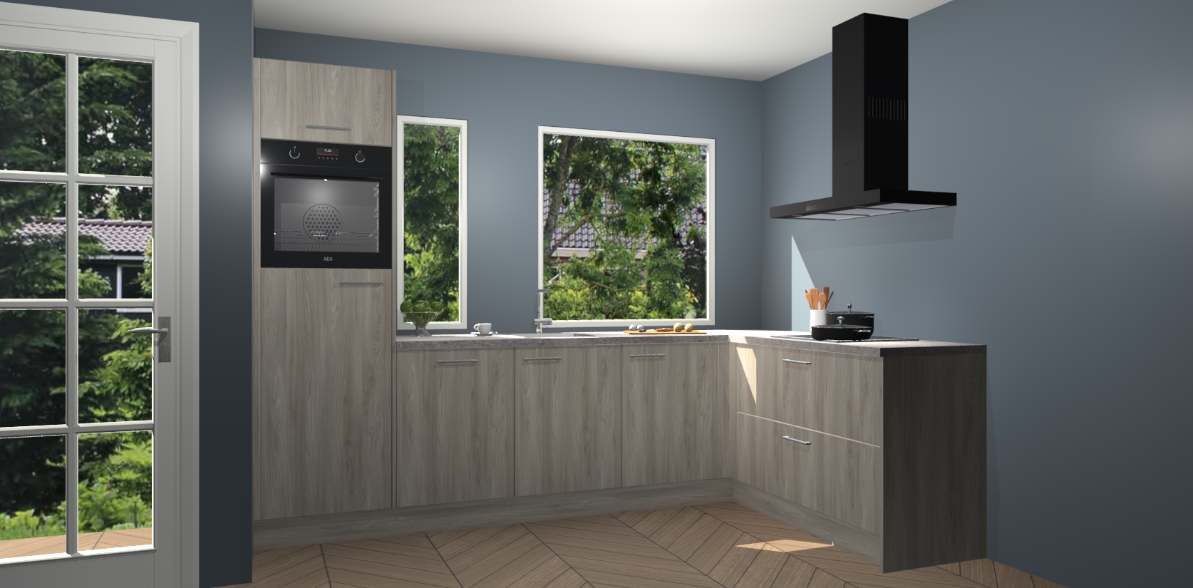Deze complete keuken wordt geleverd met 5 inbouwapparaten: een oven, inductiekookplaat, afzuigkap, vaatwasser en koelkast. De toestellen kunnen na bestelling ook gemakkelijk worden opgewaardeerd naar AEG. Bovendien is elke deur in deze keuken voorzien van handige softclose technologie voor eenvoudig gebruik! Als een leuke toevoeging zit in deze keuken ook een carrousel, zo hoef je niet meer de hoek in duiken om iets te pakken.