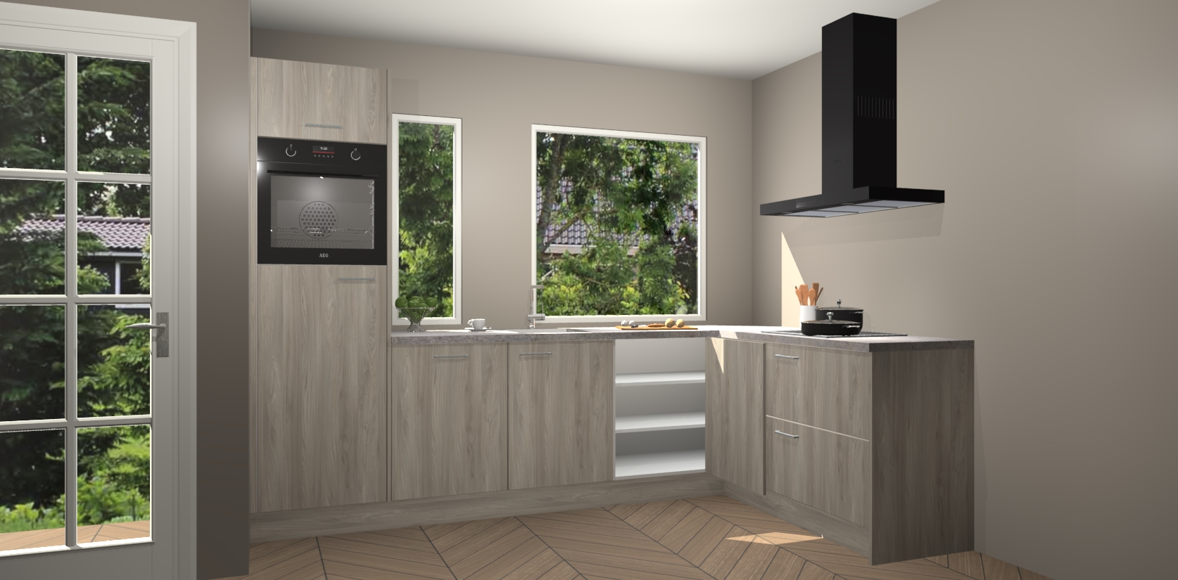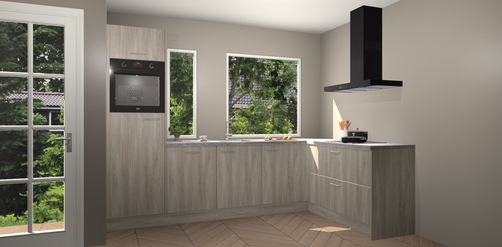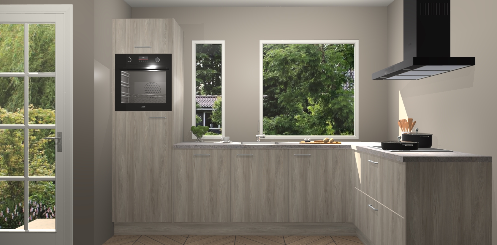 Deze complete keuken wordt geleverd met 5 inbouwapparaten: een oven, inductiekookplaat, afzuigkap, vaatwasser en koelkast. De toestellen kunnen na bestelling ook gemakkelijk worden opgewaardeerd naar AEG. Bovendien is elke deur in deze keuken voorzien van handige softclose technologie voor eenvoudig gebruik! Als een leuke toevoeging zit in deze keuken ook een carrousel, zo hoef je niet meer de hoek in duiken om iets te pakken.