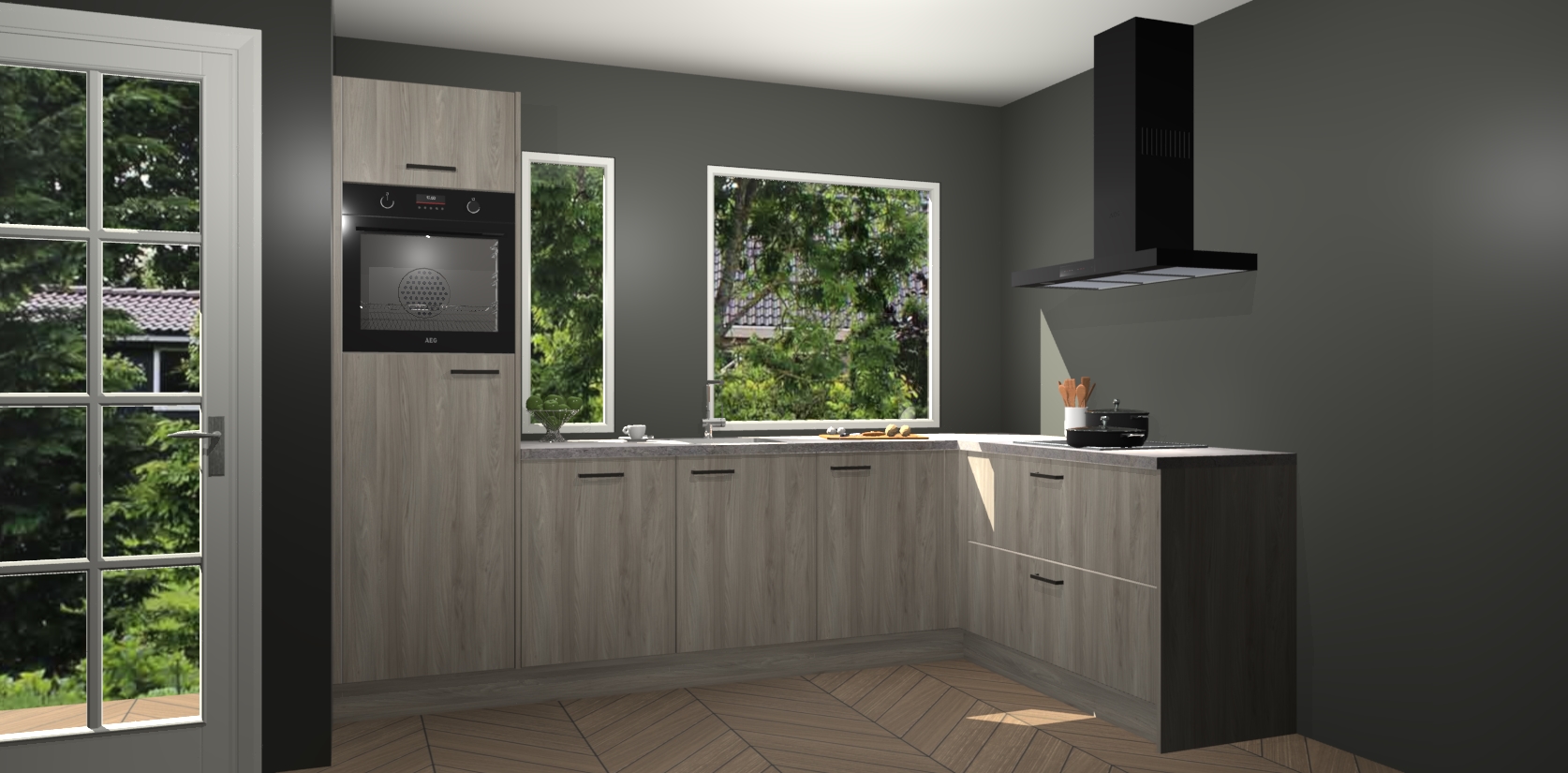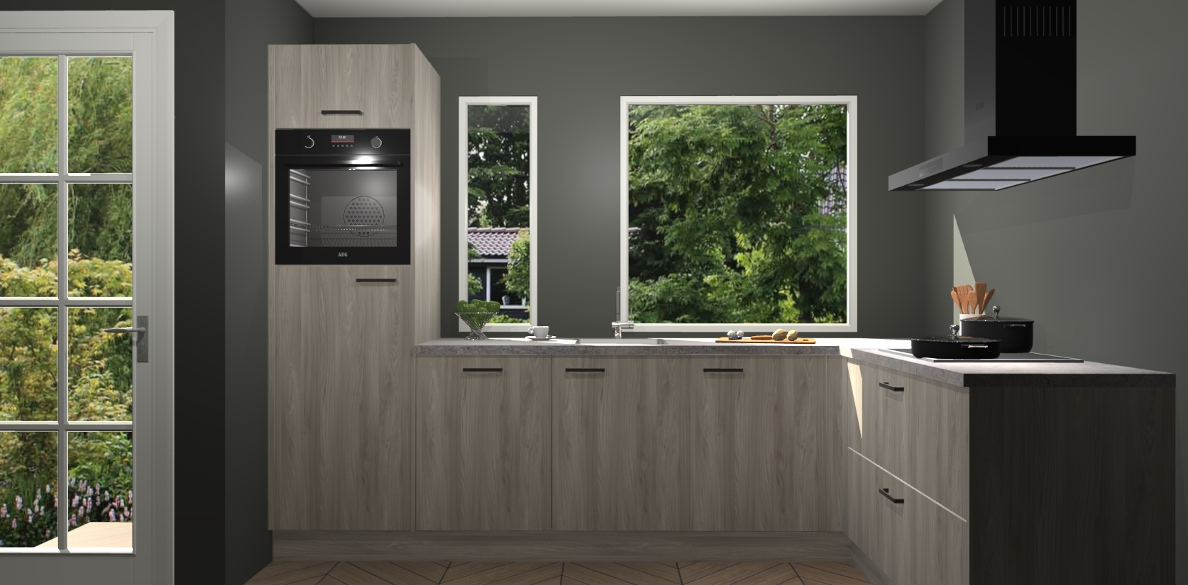 Deze complete keuken wordt geleverd met 5 inbouwapparaten: een oven, inductiekookplaat, afzuigkap, vaatwasser en koelkast. De toestellen kunnen na bestelling ook gemakkelijk worden opgewaardeerd naar AEG. Bovendien is elke deur in deze keuken voorzien van handige softclose technologie voor eenvoudig gebruik! Als een leuke toevoeging zit in deze keuken ook een carrousel, zo hoef je niet meer de hoek in duiken om iets te pakken.