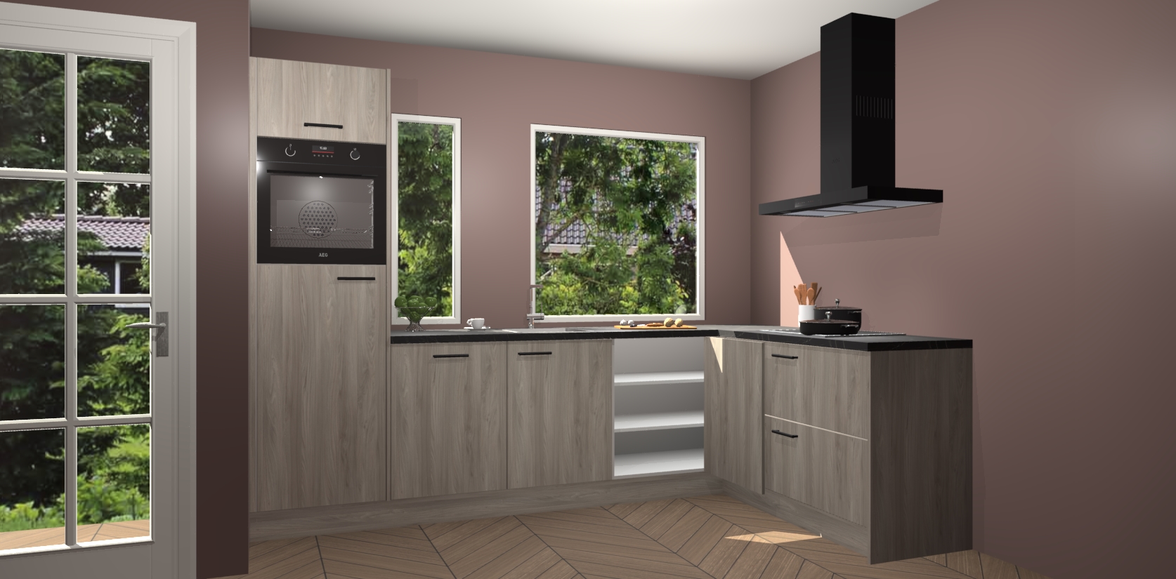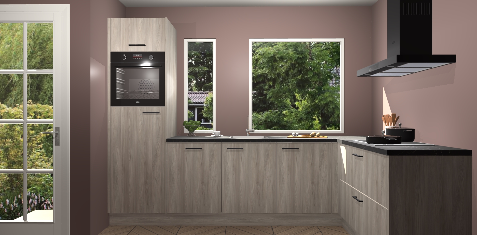 Deze complete keuken wordt geleverd met 5 inbouwapparaten: een oven, inductiekookplaat, afzuigkap, vaatwasser en koelkast. De toestellen kunnen na bestelling ook gemakkelijk worden opgewaardeerd naar AEG. Bovendien is elke deur in deze keuken voorzien van handige softclose technologie voor eenvoudig gebruik! Als een leuke toevoeging zit in deze keuken ook een carrousel, zo hoef je niet meer de hoek in duiken om iets te pakken.