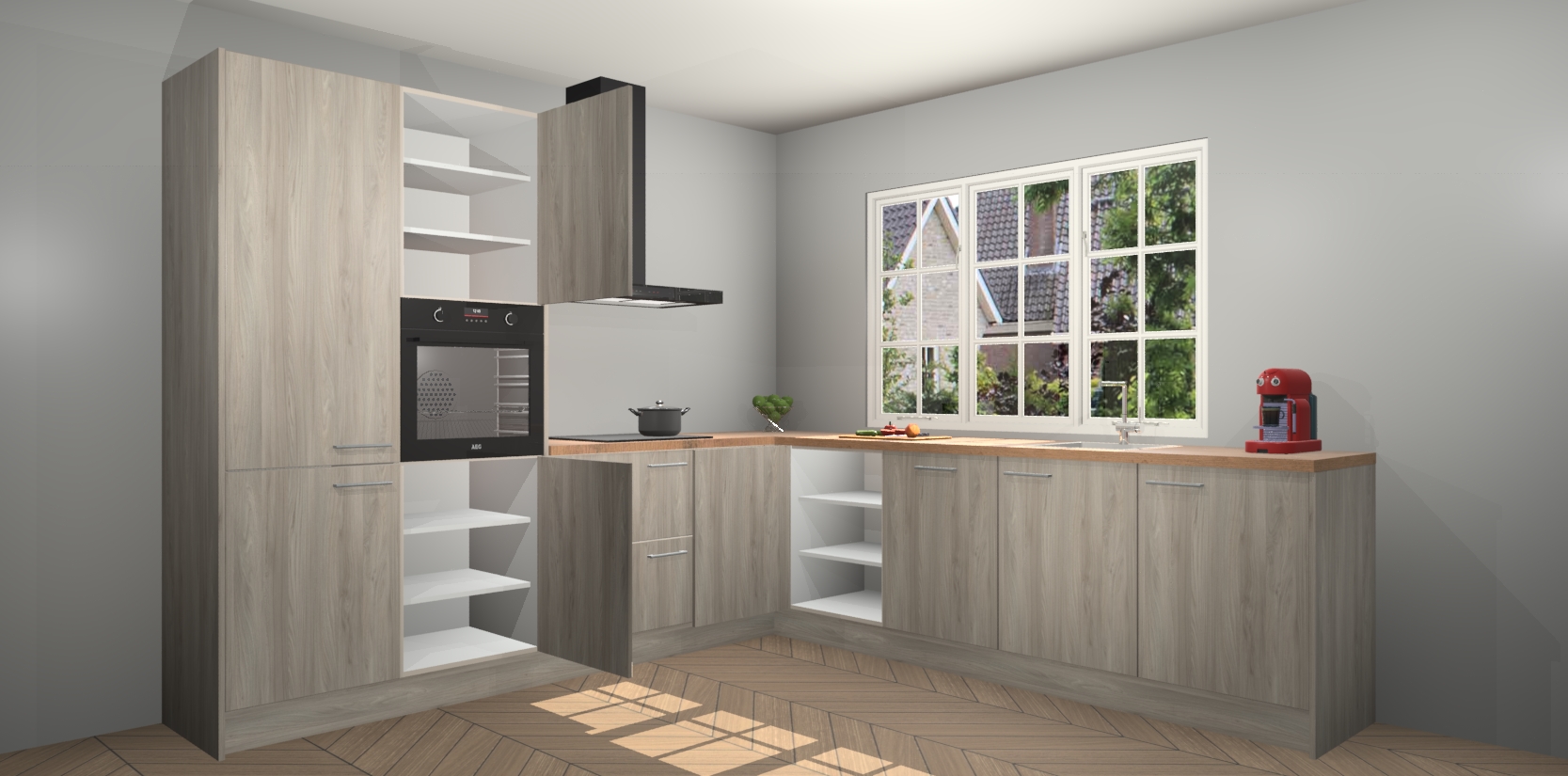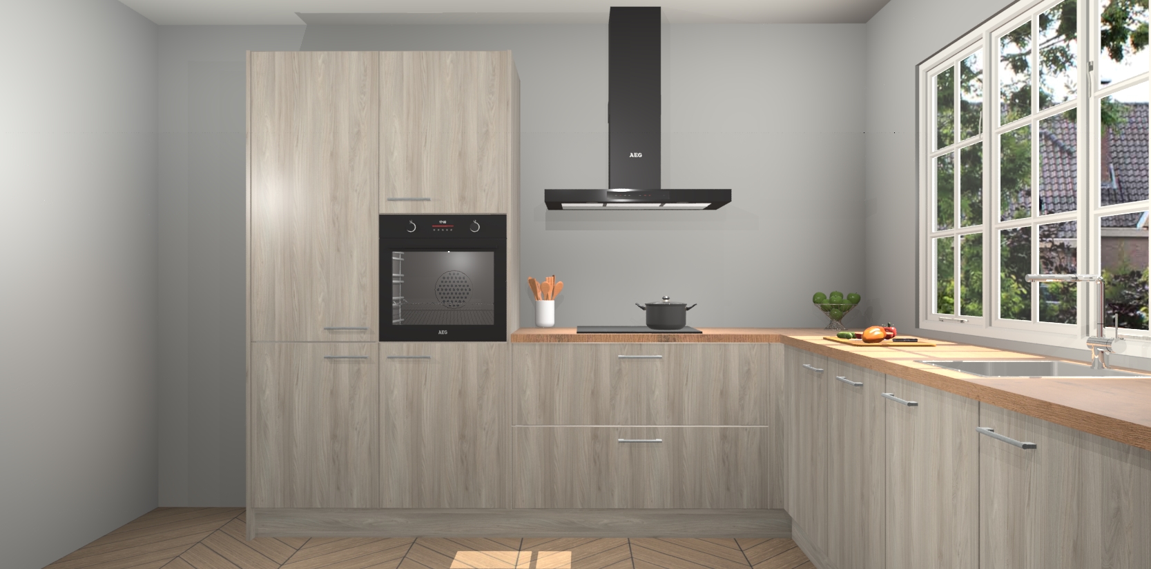 De keuken heeft veel opbergruimte, waardoor u alle ingrediënten gemakkelijk bereikbaar hebt staan. En daarnaast bevat deze volledig uitgeruste keuken ook 5 ingebouwde apparaten: een oven, inductiekookplaat, afzuigkap, vaatwasser en koelkast. Deze zijn heel eenvoudig na bestellen te upgraden naar AEG als u dit wilt. Bovendien zijn de softclose-kastdeuren ideaal; geef ze gewoon even een tikje en ze sluiten automatisch met geruisloze precisie.
