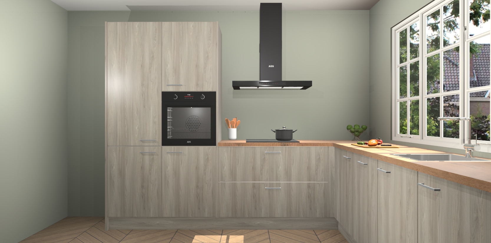 De keuken heeft veel opbergruimte, waardoor u alle ingrediënten gemakkelijk bereikbaar hebt staan. En daarnaast bevat deze volledig uitgeruste keuken ook 5 ingebouwde apparaten: een oven, inductiekookplaat, afzuigkap, vaatwasser en koelkast. Deze zijn heel eenvoudig na bestellen te upgraden naar AEG als u dit wilt. Bovendien zijn de softclose-kastdeuren ideaal; geef ze gewoon even een tikje en ze sluiten automatisch met geruisloze precisie.
