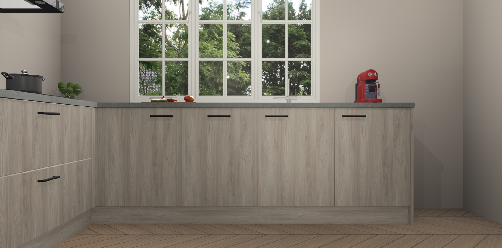 Welkom in de nieuwe wereld van een moderne keuken: de Olm keuken Casablanca! Met dit innovatieve keukendesign haalt u de natuur naar binnen. Neem plaats aan uw hout-look keuken en voel u verbonden met de prachtige Olm kleur. Zeer gebruiksvriendelijk, ervaring door prettige materialen en kleur die perfect aansluiten bij uw sfeerkeuze in huis.