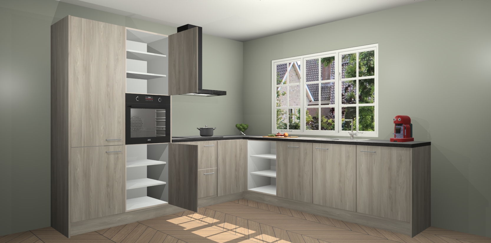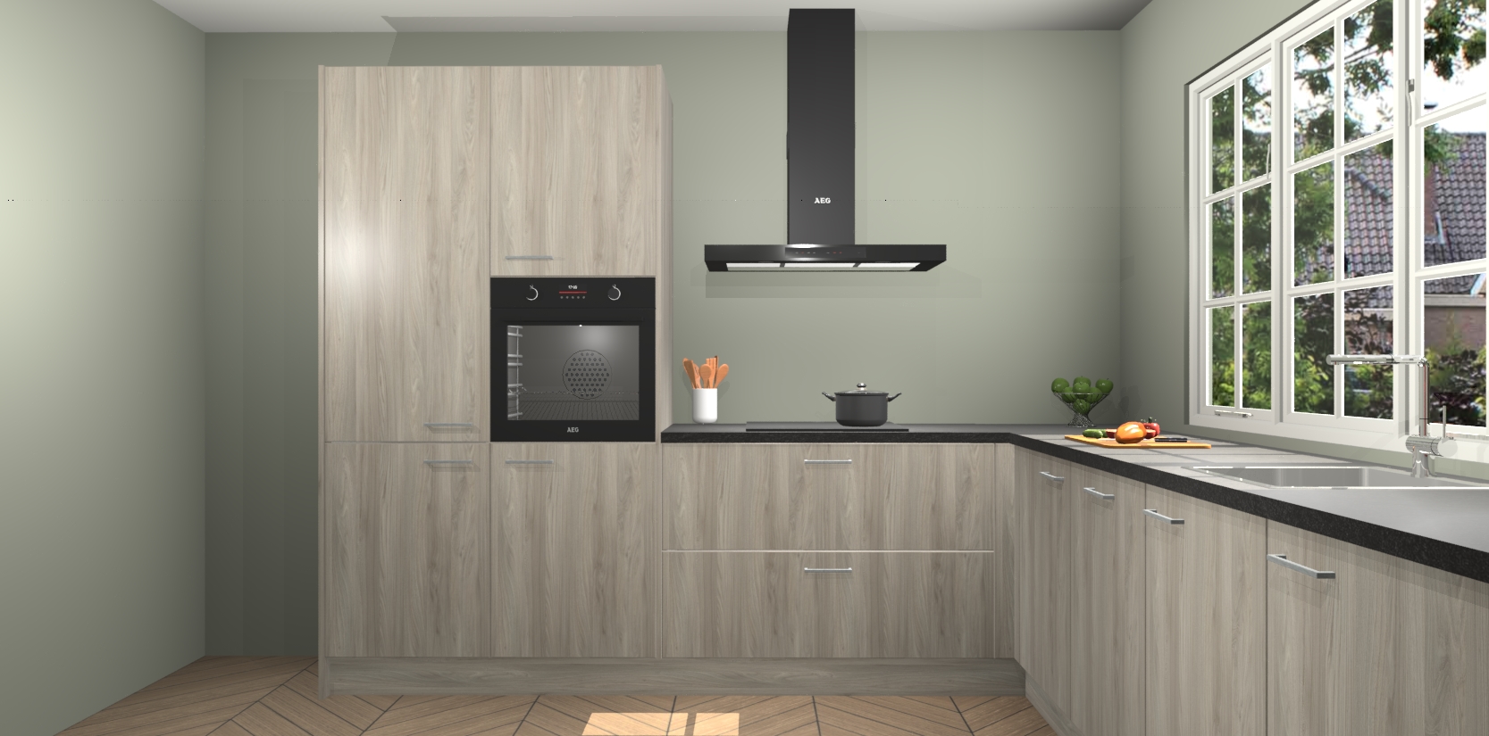 De keuken heeft veel opbergruimte, waardoor u alle ingrediënten gemakkelijk bereikbaar hebt staan. En daarnaast bevat deze volledig uitgeruste keuken ook 5 ingebouwde apparaten: een oven, inductiekookplaat, afzuigkap, vaatwasser en koelkast. Deze zijn heel eenvoudig na bestellen te upgraden naar AEG als u dit wilt. Bovendien zijn de softclose-kastdeuren ideaal; geef ze gewoon even een tikje en ze sluiten automatisch met geruisloze precisie.