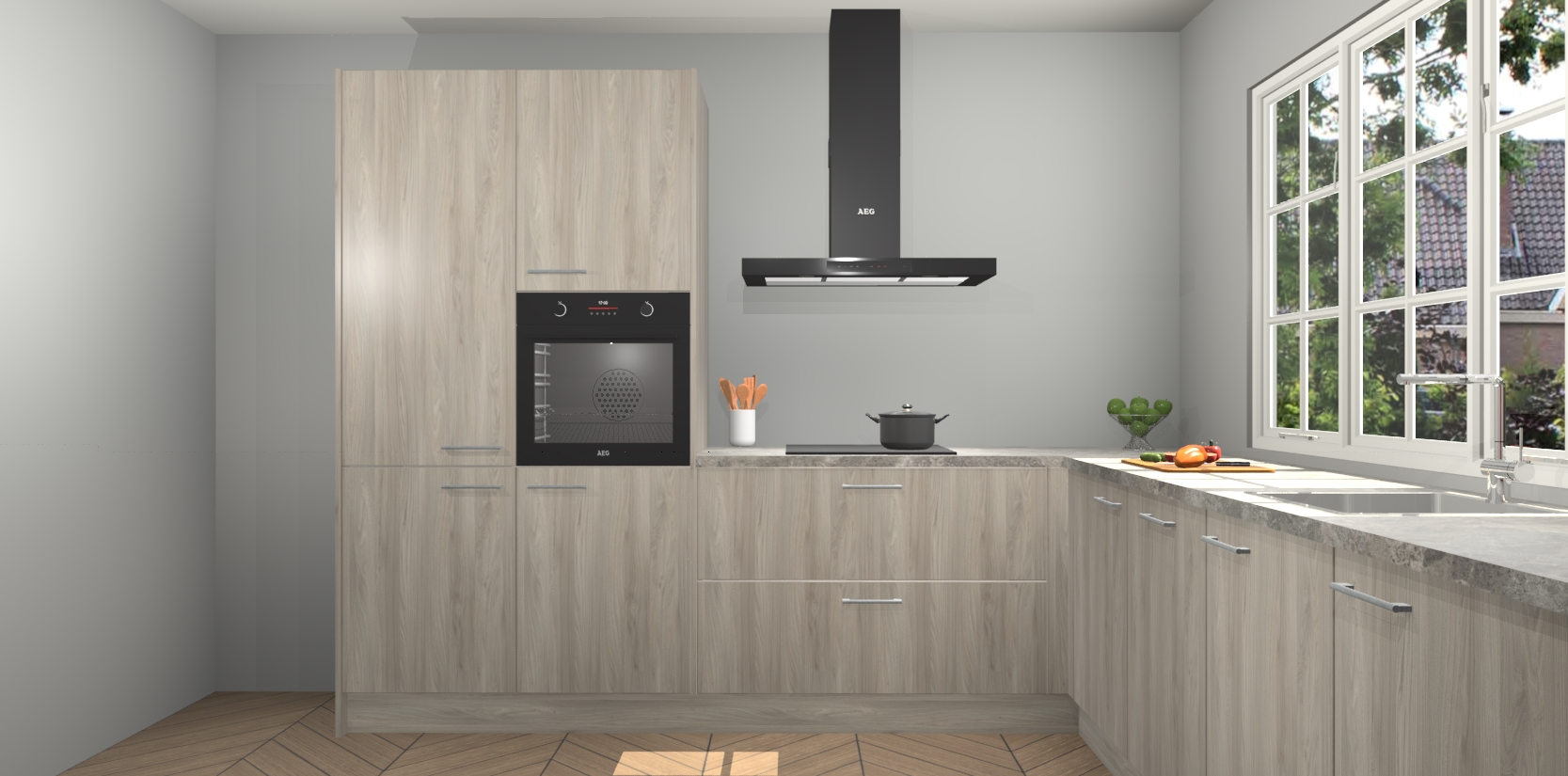De keuken heeft veel opbergruimte, waardoor u alle ingrediënten gemakkelijk bereikbaar hebt staan. En daarnaast bevat deze volledig uitgeruste keuken ook 5 ingebouwde apparaten: een oven, inductiekookplaat, afzuigkap, vaatwasser en koelkast. Deze zijn heel eenvoudig na bestellen te upgraden naar AEG als u dit wilt. Bovendien zijn de softclose-kastdeuren ideaal; geef ze gewoon even een tikje en ze sluiten automatisch met geruisloze precisie.