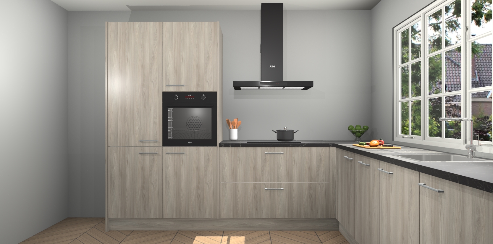 De keuken heeft veel opbergruimte, waardoor u alle ingrediënten gemakkelijk bereikbaar hebt staan. En daarnaast bevat deze volledig uitgeruste keuken ook 5 ingebouwde apparaten: een oven, inductiekookplaat, afzuigkap, vaatwasser en koelkast. Deze zijn heel eenvoudig na bestellen te upgraden naar AEG als u dit wilt. Bovendien zijn de softclose-kastdeuren ideaal; geef ze gewoon even een tikje en ze sluiten automatisch met geruisloze precisie.