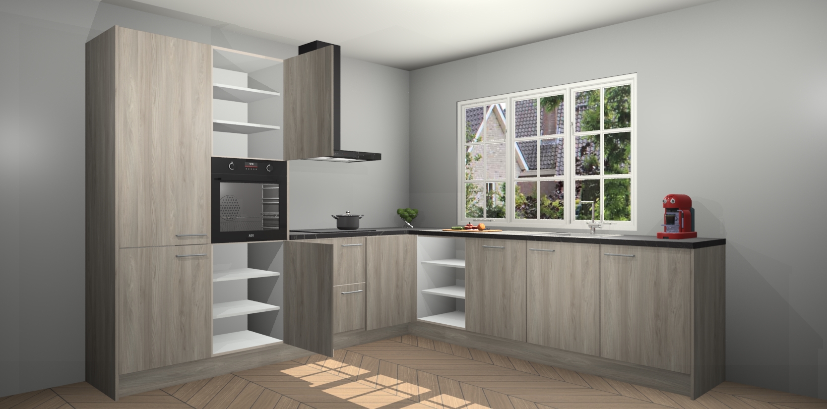 Welkom in de nieuwe wereld van een moderne keuken: de Olm keuken Casablanca! Met dit innovatieve keukendesign haalt u de natuur naar binnen. Neem plaats aan uw hout-look keuken en voel u verbonden met de prachtige Olm kleur. Zeer gebruiksvriendelijk, ervaring door prettige materialen en kleur die perfect aansluiten bij uw sfeerkeuze in huis.